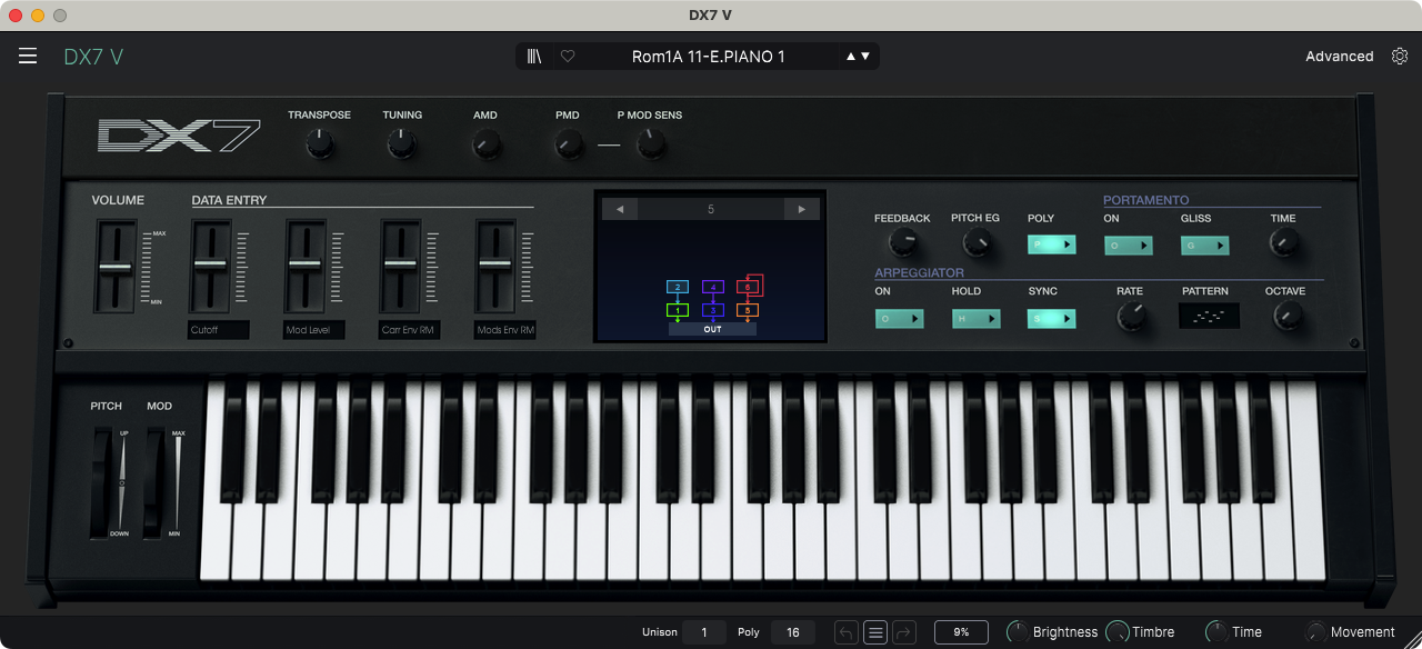 下はYAMAHA DX-7を復刻したArturiaのソフト音源「DX-7 V」