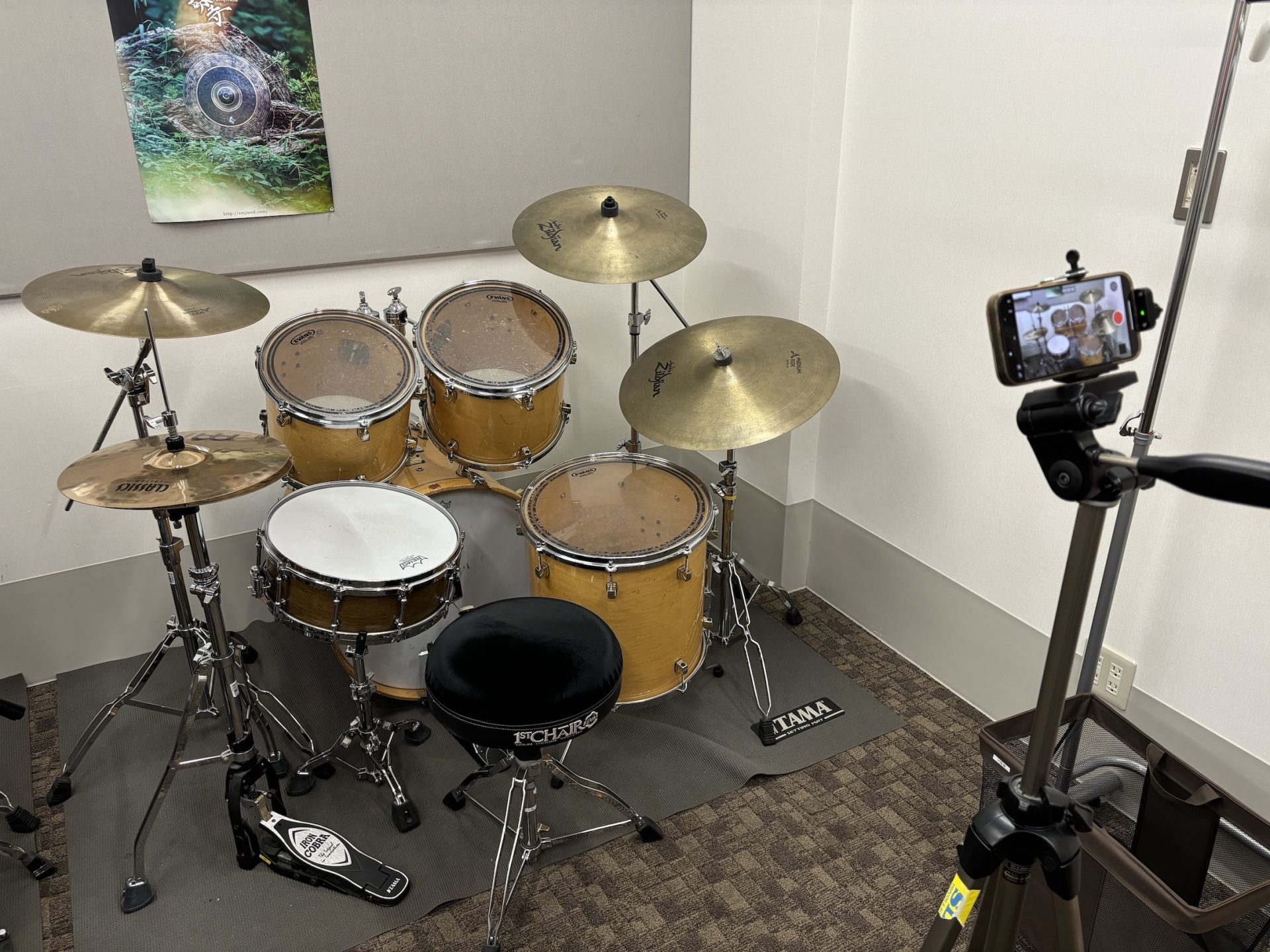 こちらも、上記のような感じでドラム奏者の真後ろ斜め上からステレオ撮影しています。