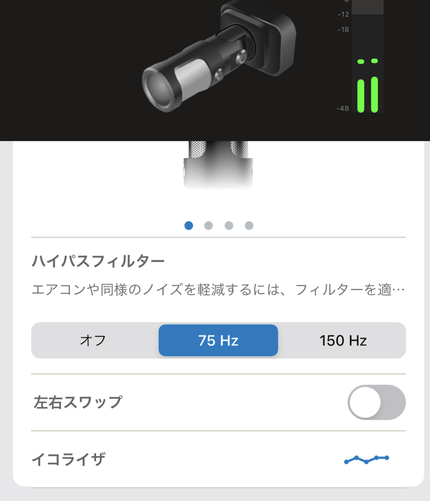 今回は細かい設定はせず、フラットな状態で録画したのですが、本機種は専用アプリを介して様々なマイク設定を行うことが可能です。