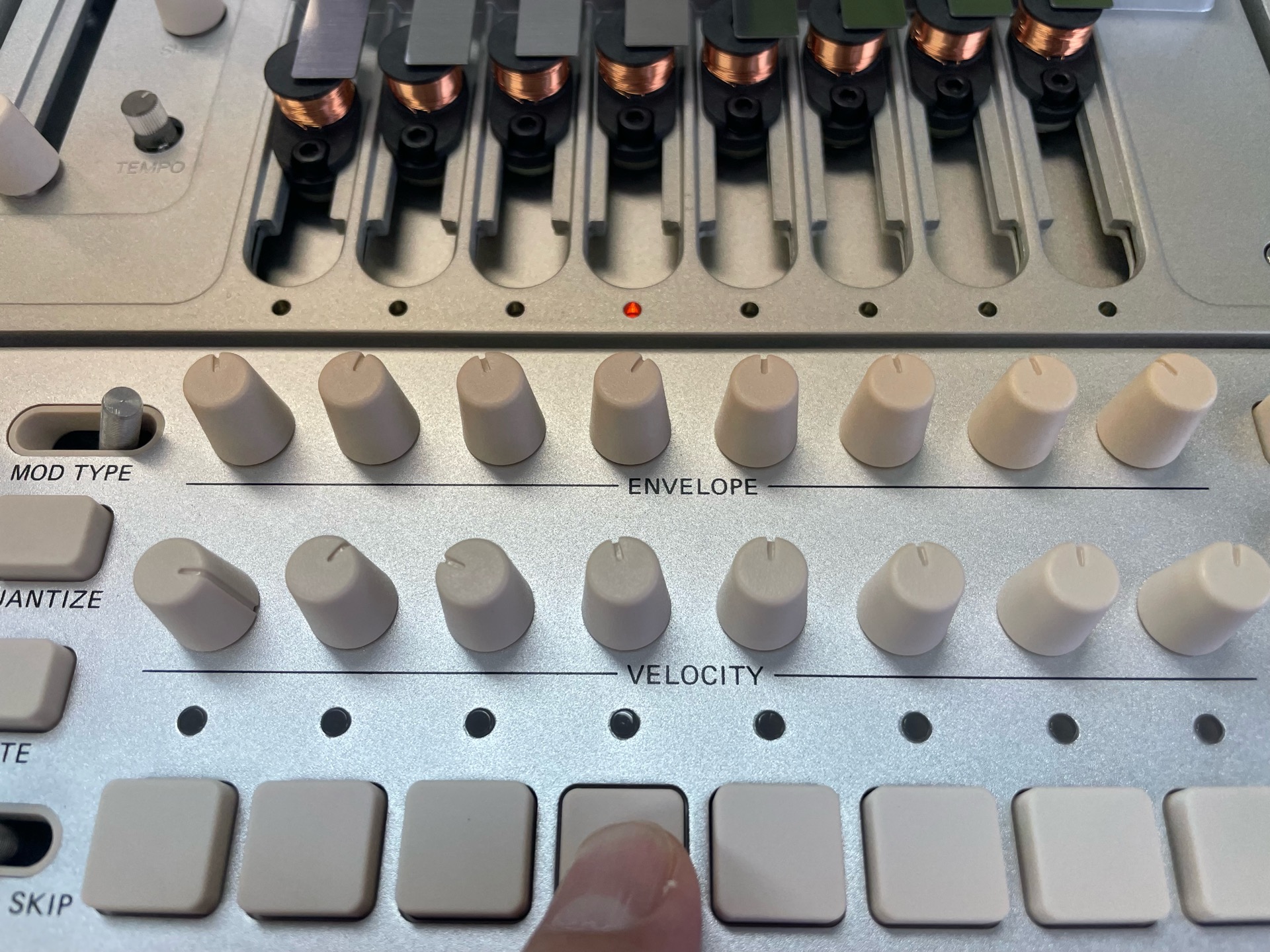 各キーの上にはそれぞれのVELOCITYとENVELOPEのノブが配置されています。