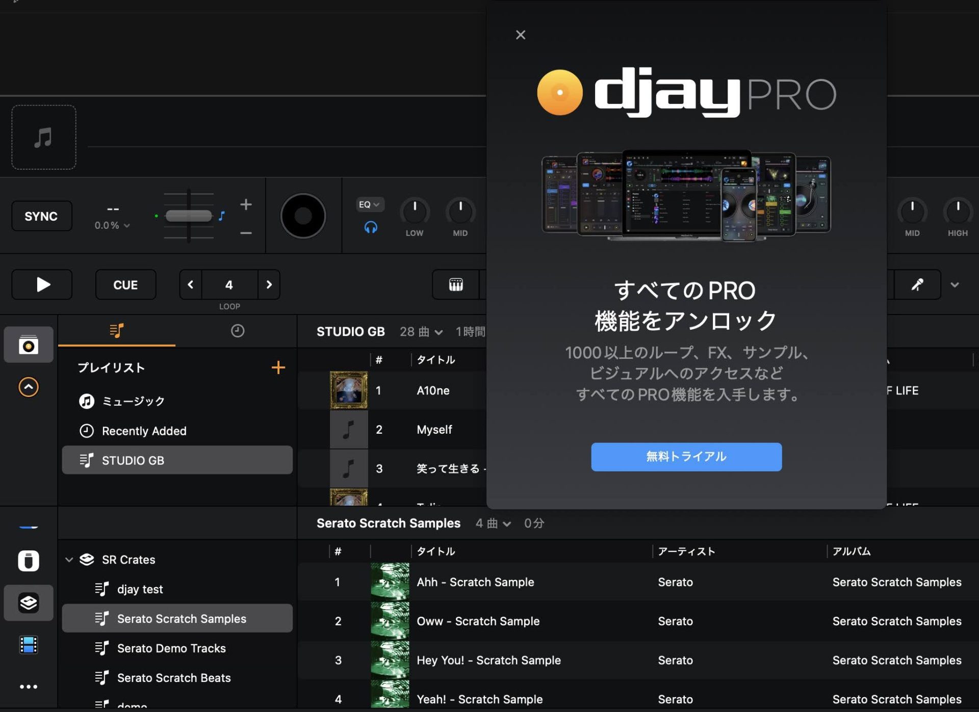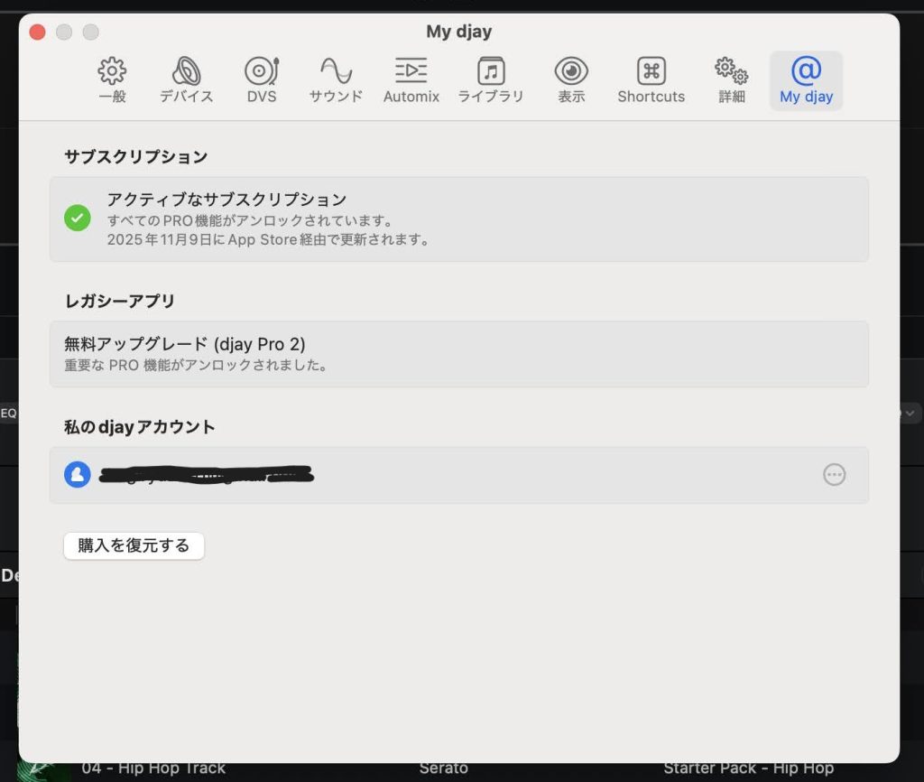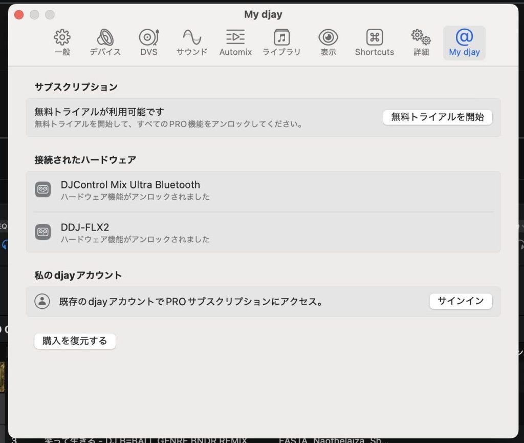 どうやら、djay対応機種を接続してアンロックされるのはハードウェア関連の機能のみで、マイコレクション編集やUSBデバイスへの書き込みは別途サブスクリプションが必要なようでした。