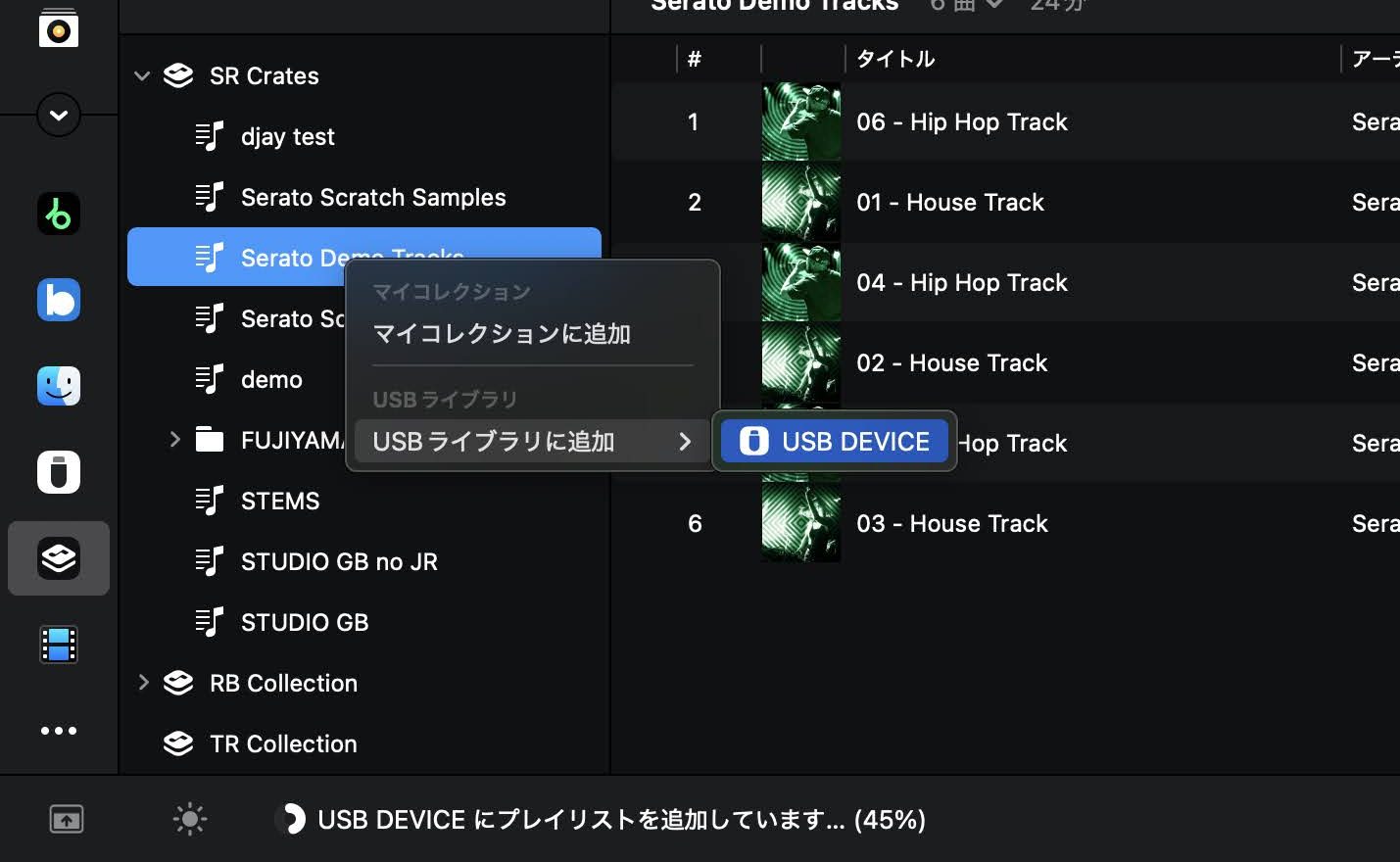 サブスクリプションに登録することで、djayの中に読み込んだSeratoのプレイリストを直接USBデバイスに書き込むことができました。