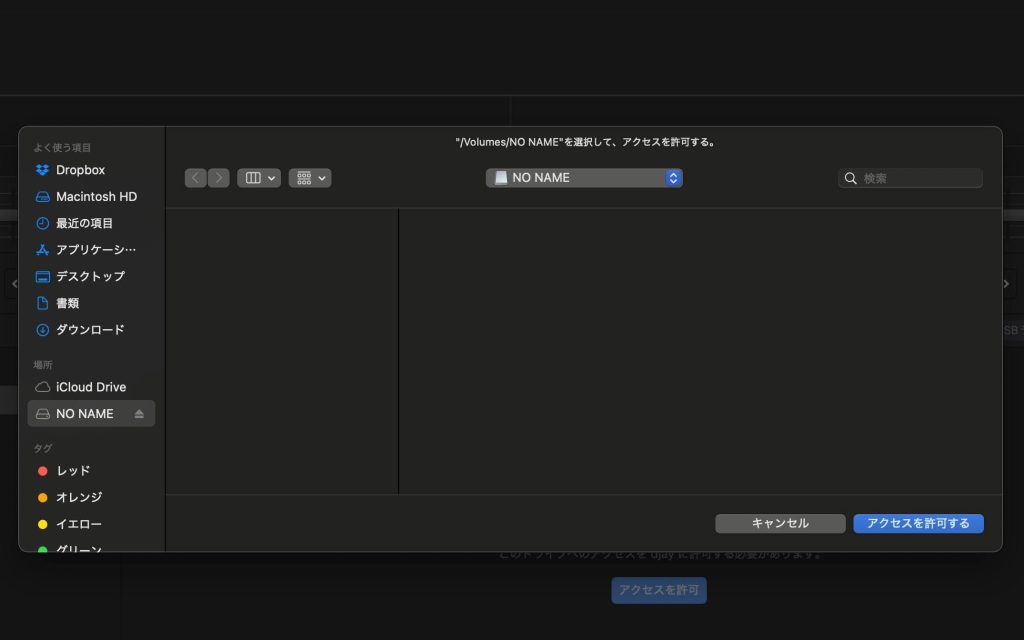 左下のUSBアイコンを開き、(表示に従って)アクセスを許可 → 新しいライブラリ、の順に進めると使用可能になります。