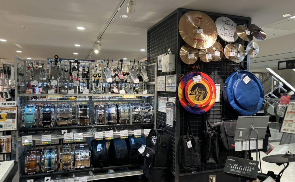 ドラマーの皆様が楽しいと感じて頂けるようなドラムコーナーを作れるよう日々精進しています!ご来店お待ちしております。