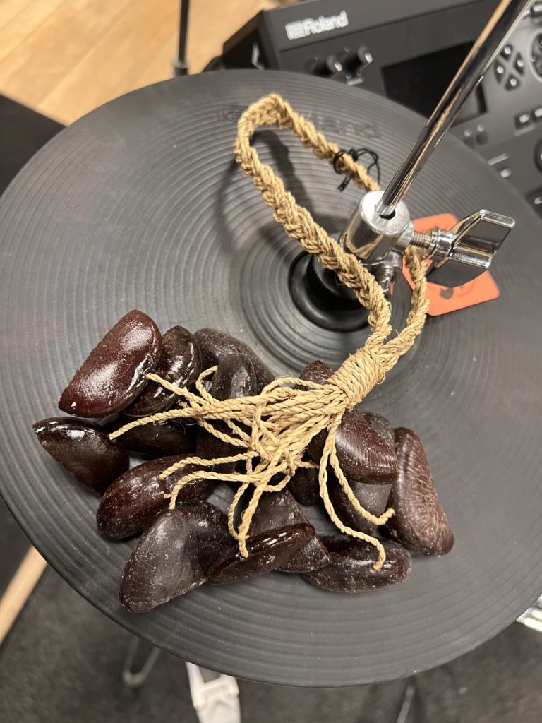 アンデス地方の伝統的な儀式や祝典で使われるような楽器でしたが、独特な「カシャッ」というサウンドがドラムにも合い、使用する方が増えました。サンプリングパッドなどに入っているようなサウンドが、アナログで作れてしまうのです、、!