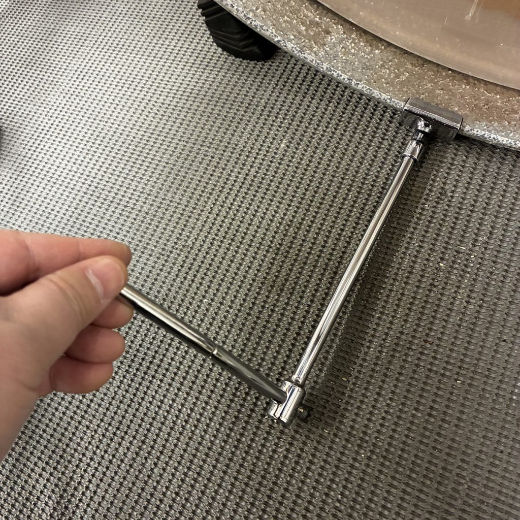 さらに感動させてくれたのは、バスドラムの下側のボルトを回す際にタイコ自体を持ち上げることなく回せる点。