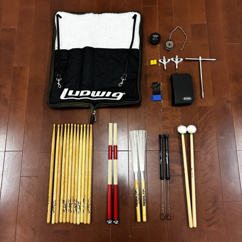 今回はいちドラマーである私、Kのスティックバッグの中身をご紹介いたします。