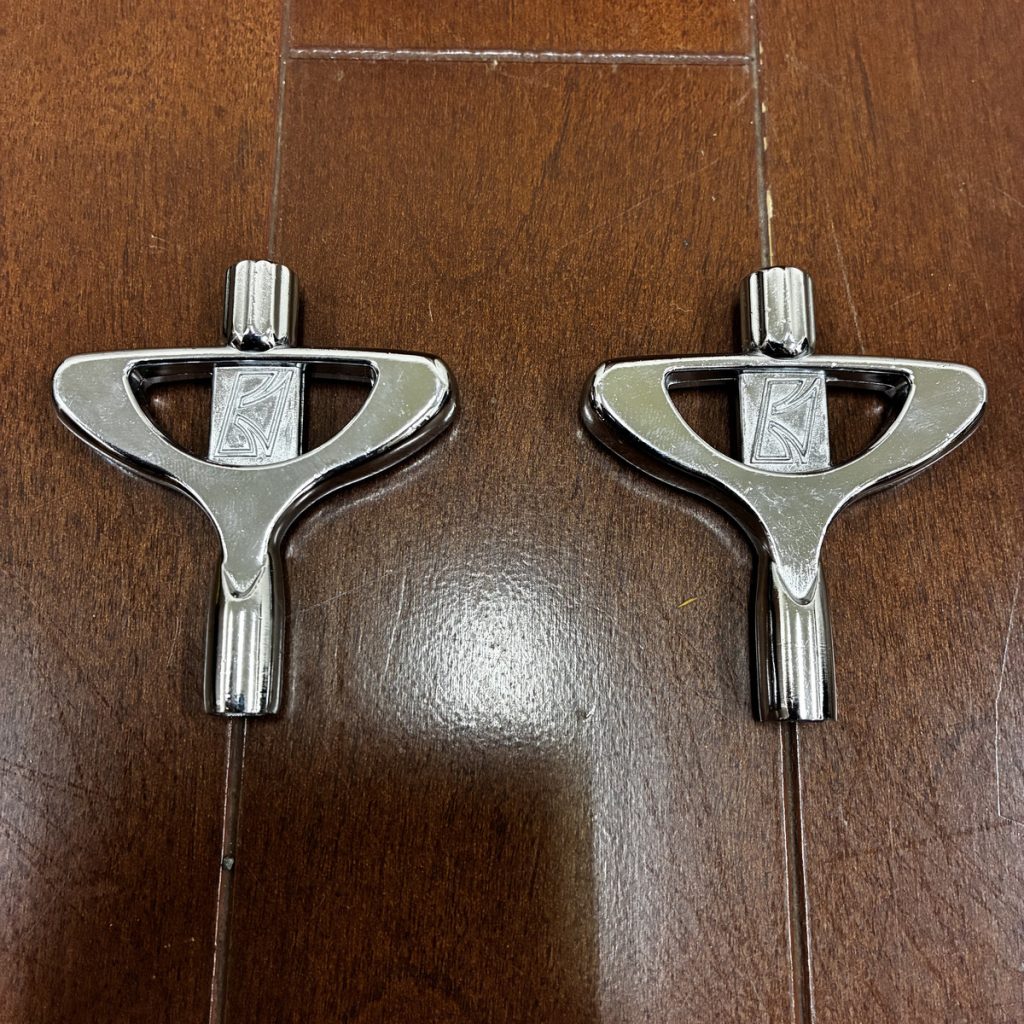 二つ持っているのはヘッドを張り替える際に対角線上のボルトを両手で同時に均等に締められるようにするため。