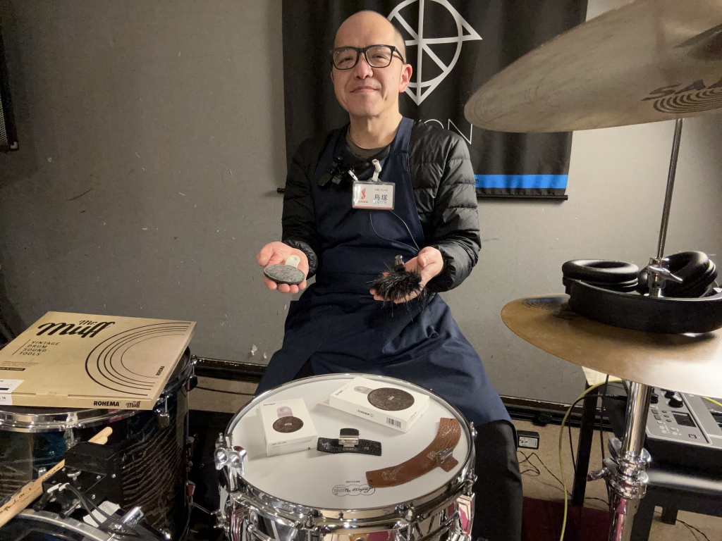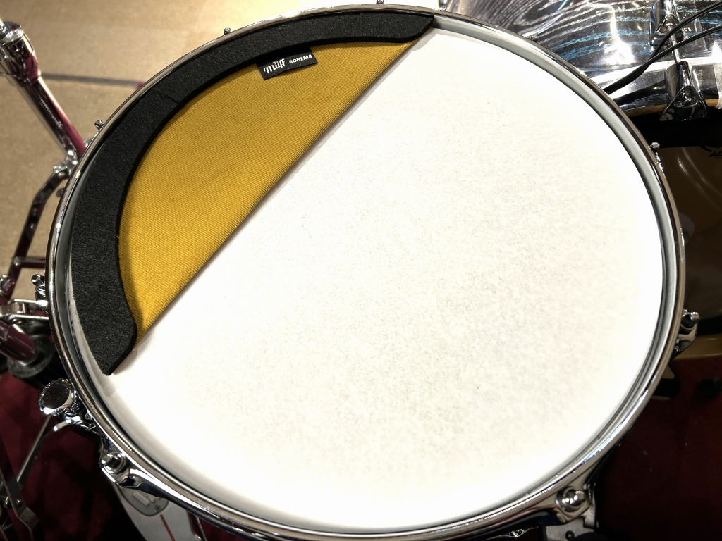 古い時代のレコーディング作品では打面を布などで広く覆う手法があったそうですが、そのようなサウンドを彷彿とさせる、しっかりと余韻を抑えたあたたかく太いサウンドに変化するように感じました。