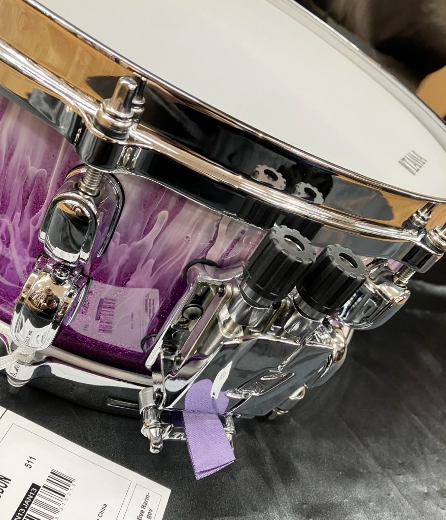 このスネアの正式名称「Melody Master」は娘さんのお名前「Melodyちゃん」に由来するそうです♪ ※エンブレムにも書かれています。