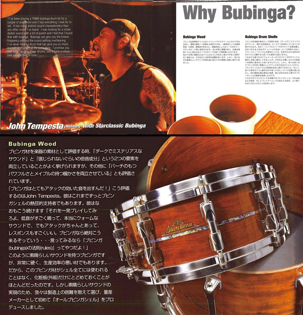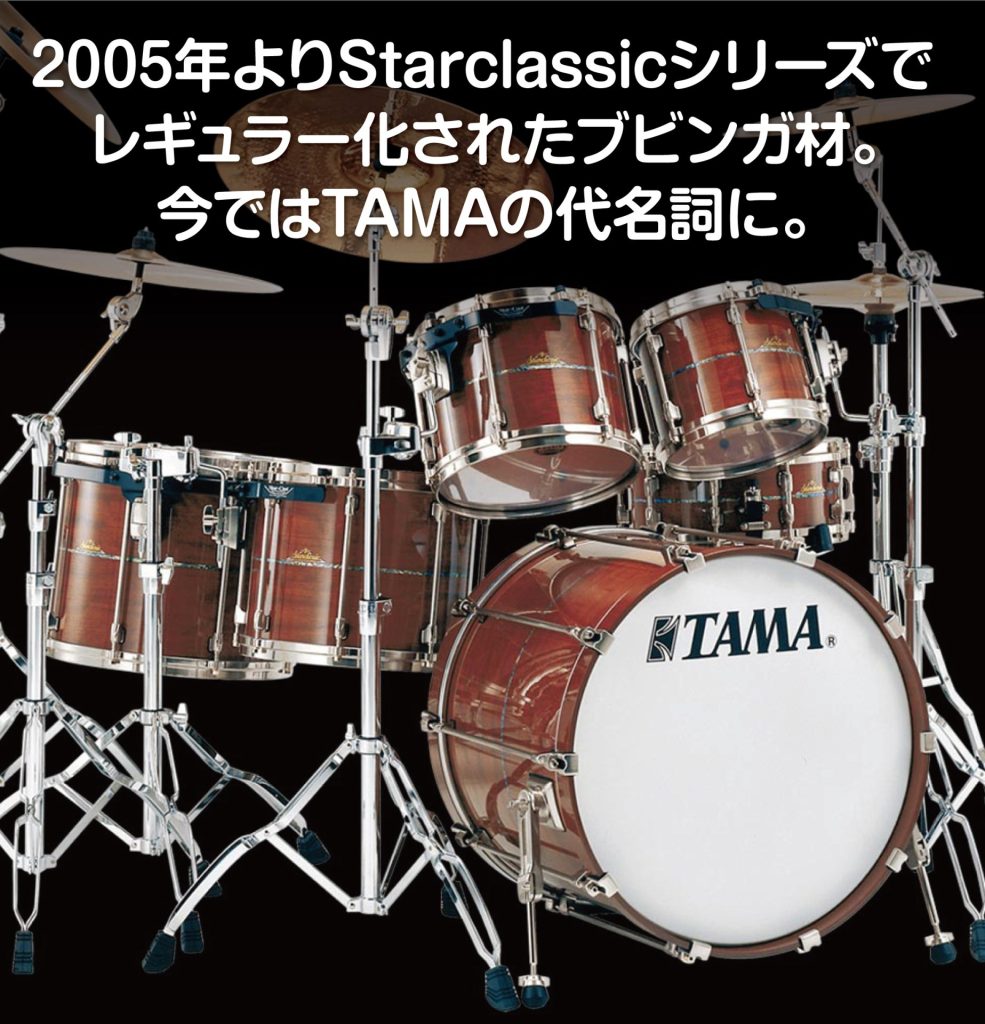 TAMAでは2005年にStarclassicシリーズでブビンガ材がレギュラー化され、世界的なアーティスト達もそのサウンドを絶賛。