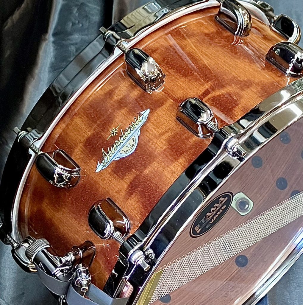 2026年TAMA新商品からご紹介いたしました。同じブビンガ材を使用した2つのスネアドラム。