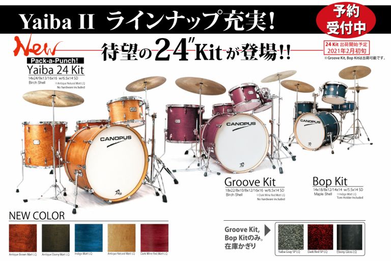 YAIBAⅡシリーズには、22インチバスドラムの「Groove kit」、18インチバスドラムの「Bop kit」もラインナップされていますので、用途や場面に合わせてチョイスが可能。またスネアドラム単体でも販売しているので、初めてのスネアにもおすすめです。YAIBAⅡキット、ぜひお試しいただきたいと思います!