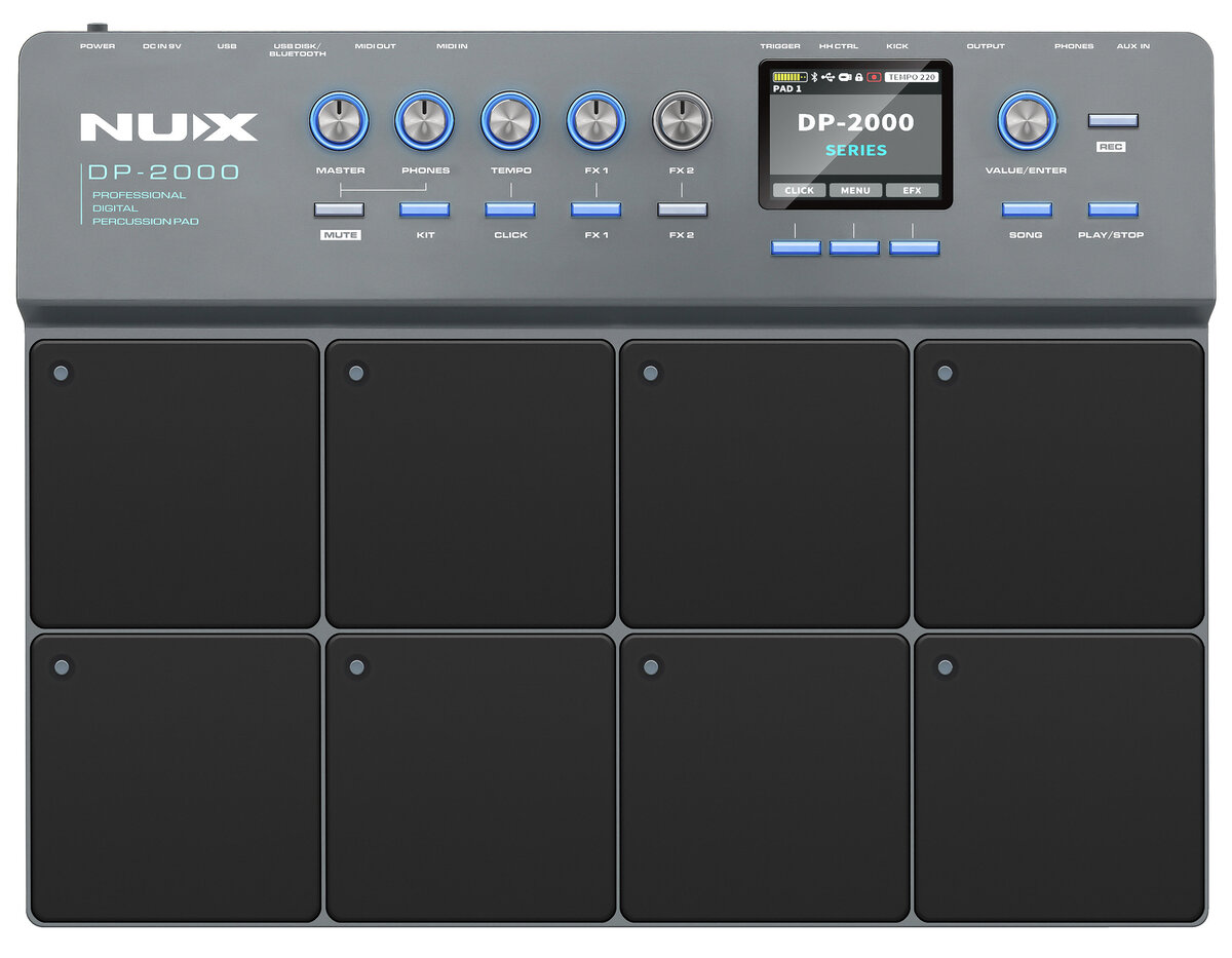 NUX DP-2000 は、8つのベロシティ対応パッドを搭載したデジタル・パーカッションパッドです。