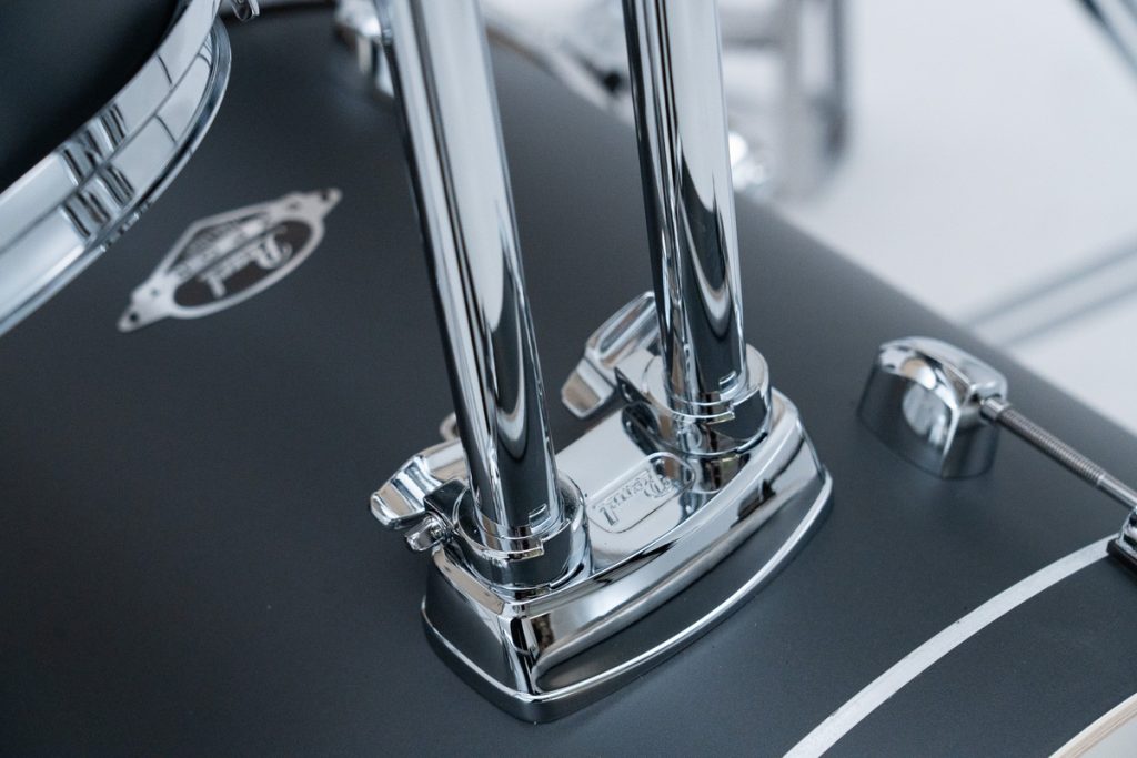 本モデルのバスドラムは20″x16″、フロアタムは14″x14″というややコンパクトなサイズを採用しており、セッティング時の高さと奥行きを抑えたレイアウトが可能です。