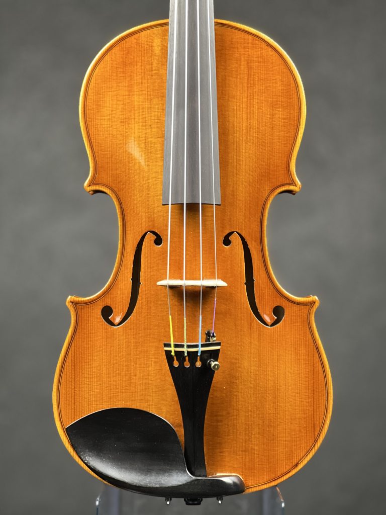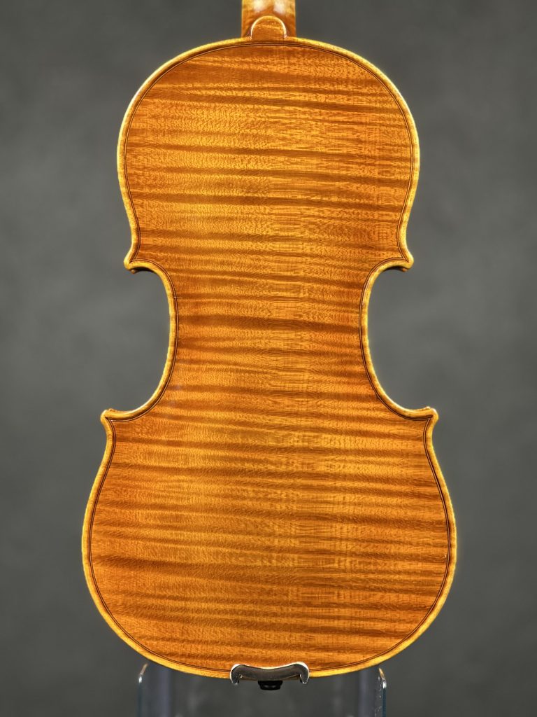 チプリアーニの作品は、素材選びから製作に至るまで一貫して厳格な基準を設けており、アルプス産の上質なスプルース材や美しいトラ杢のメイプル材を用いています。ニスは温かみのある琥珀色から深紅にかけてのグラデーションが特徴で、伝統的なクレモナ様式を踏襲しながらも、現代的な感性による洗練された美観を備えています。