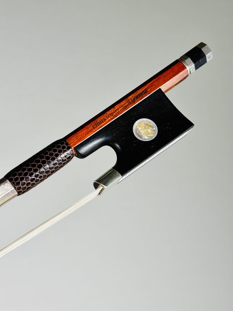 Christophe Schaeffer(クリストフ・シェーファー)は1958年生まれ。Bernard Ouchard(ベルナール・ウーシャ)に弓製作を学び、20世紀最高の弓職人と称されるEugene Sartory(ユージン・サルトリー)の子孫からその道具や材料を譲り受けた現代最高峰の職人のひとり。