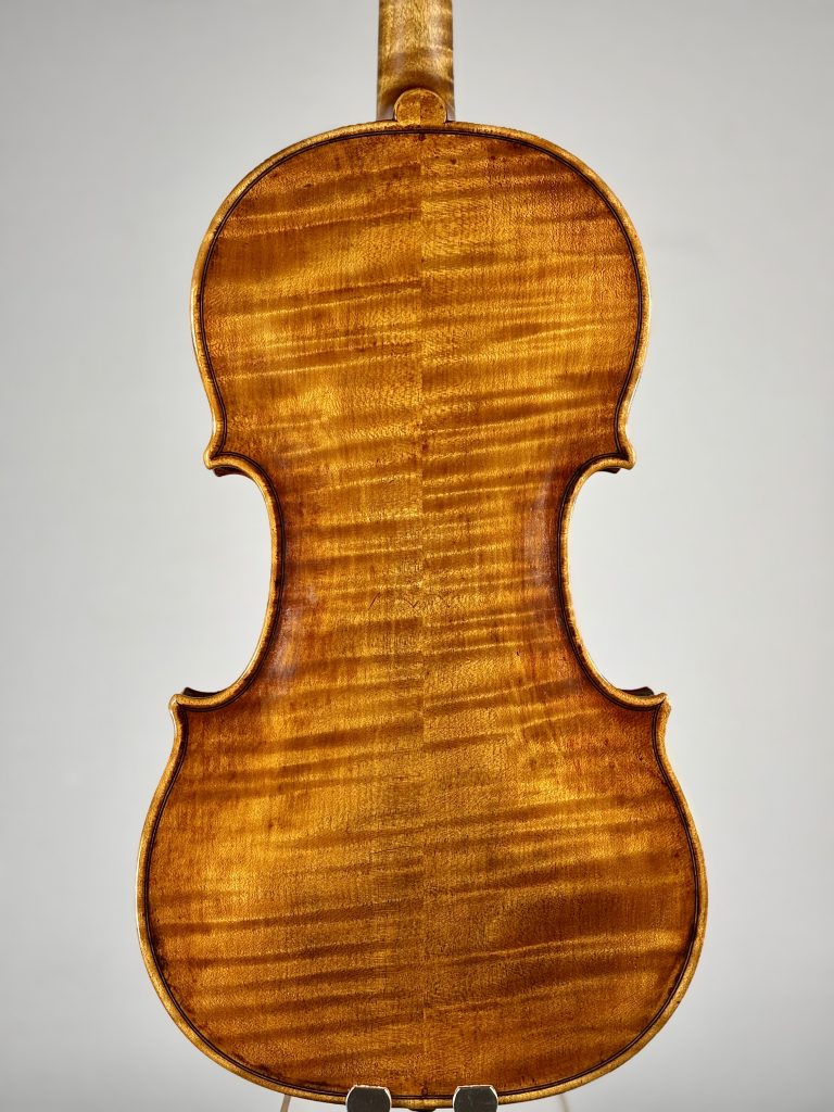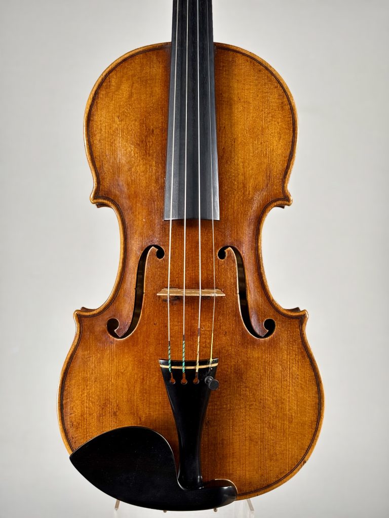 フィレンツェの隠れた名工、ジャンルカ・モンテネグロの最新作。本作は、ニスの深みと木材の風合いが絶妙に調和しており、弾き込むほどにオールド感が増すような、落ち着いた美しさが魅力です。見た目の穏やかな印象とは裏腹に、音色は非常に力強い個性を持っています。柔らかさと強さという相反する特性を併せ持つため、奏者は幅広い表現が可能です。