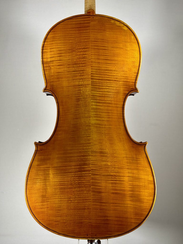 前オーナー様のもとであまり弾き込まれないまま保管されていたため、現状の音質にはまだ硬さが残っています。しかしながら、新作楽器にはない年月を経た材特有の柔らかさと、豊かな響きを併せ持っています。