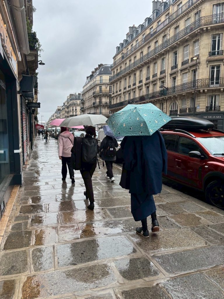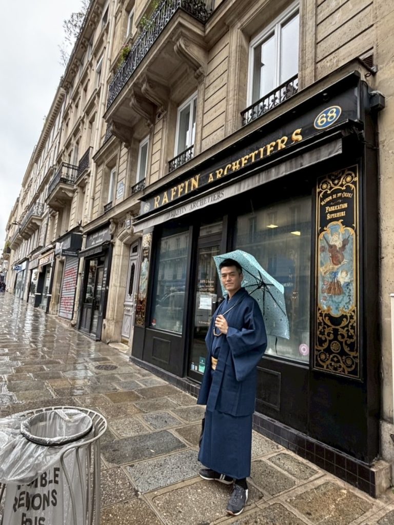 一行は次の買付先に歩いて移動。あいにくの雨ですが、さすがは花の都パリ。どう切り取っても美しい街並みが絵になります!羽田空港でやむなく買った豆柴柄の傘も、案外馴染みます(笑)