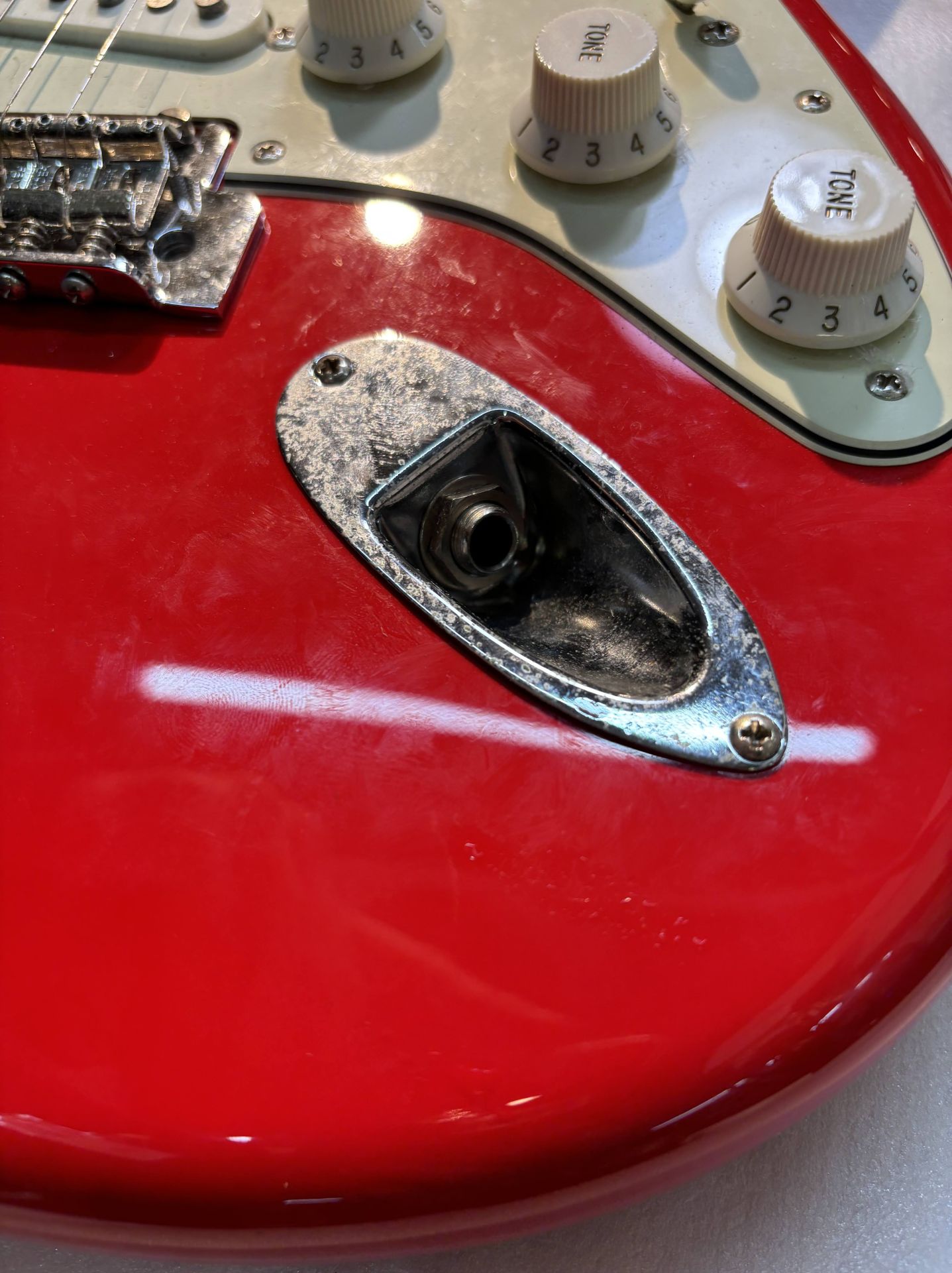 レスポールやテレキャスなどのサイドについているモデルはわざわざのぞき込まなければ見えないですし、シールドを刺すときの感覚だけでは気が付かないものです。