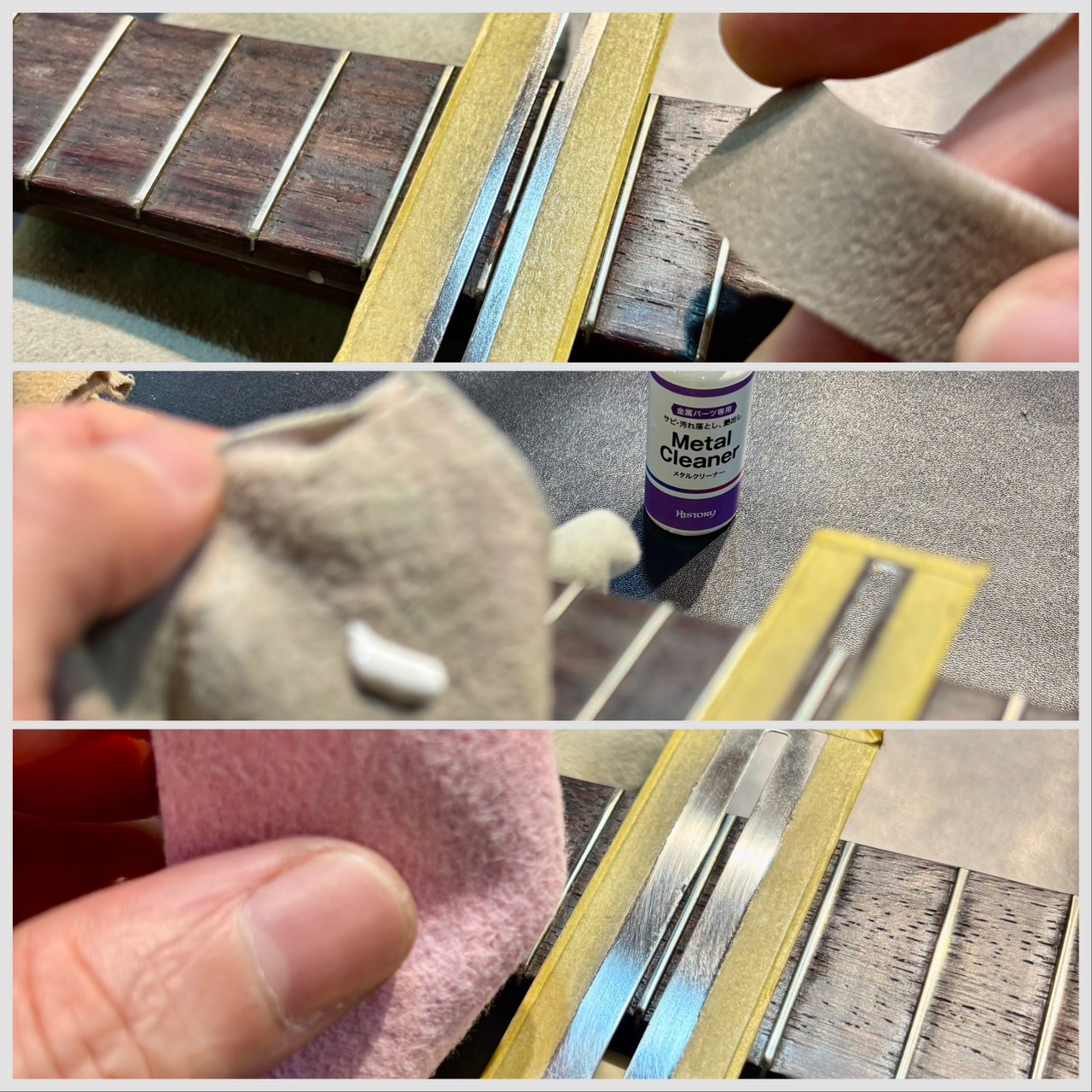 ◉その後、メタル・クリーナーでフレットを磨きます。