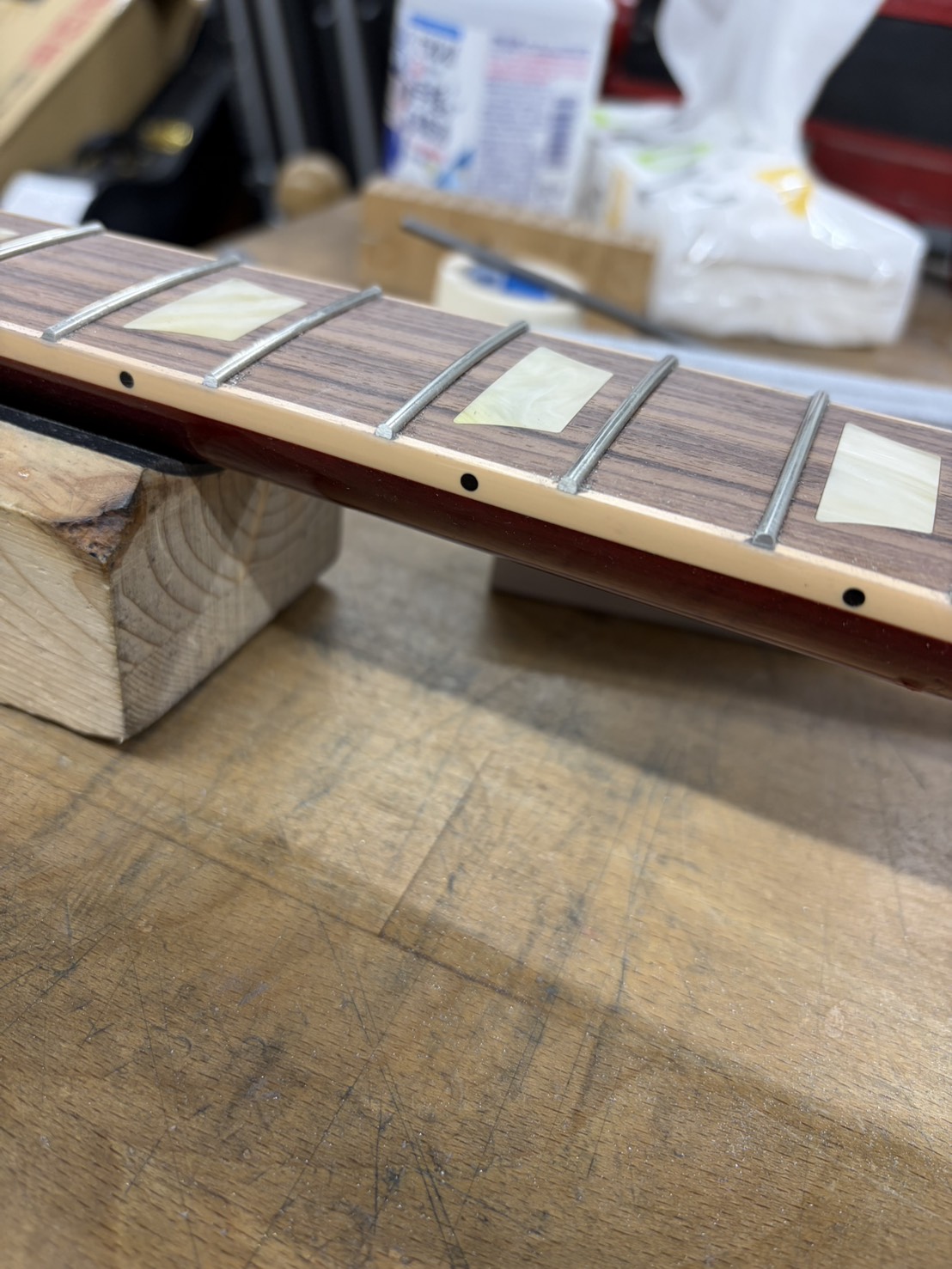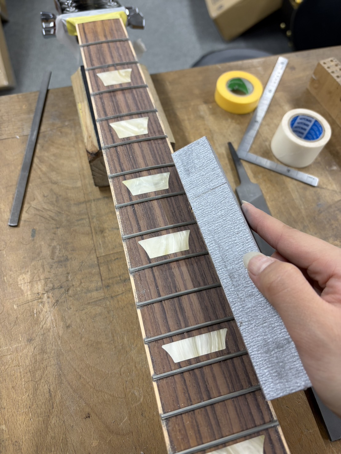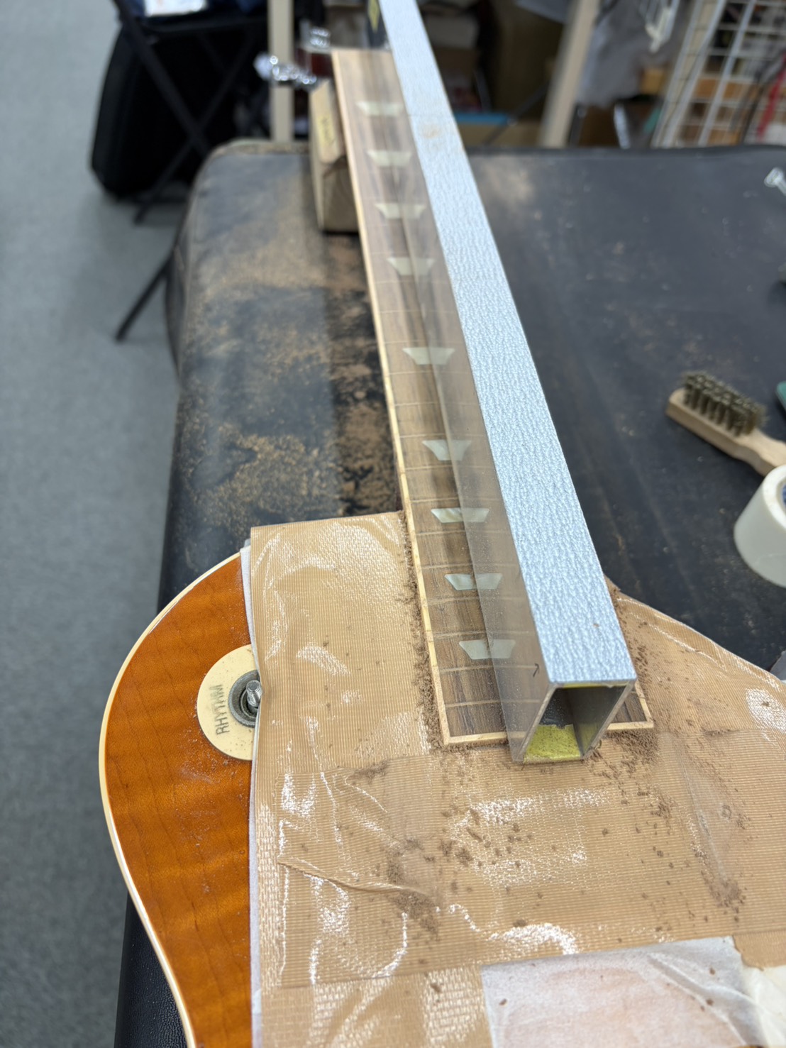■指板調整 ネックの癖を確認しながら行います。指板アールも重要です!