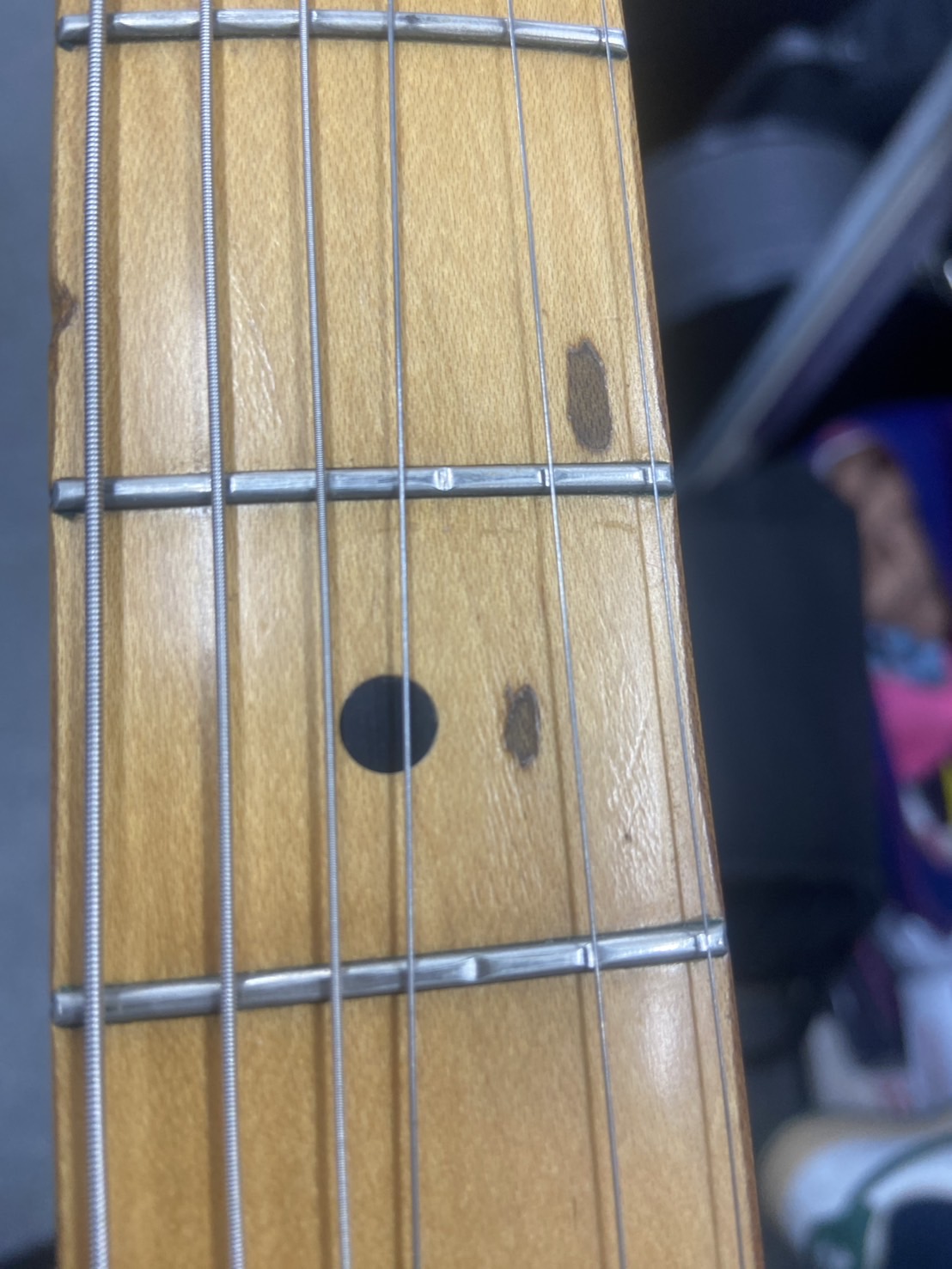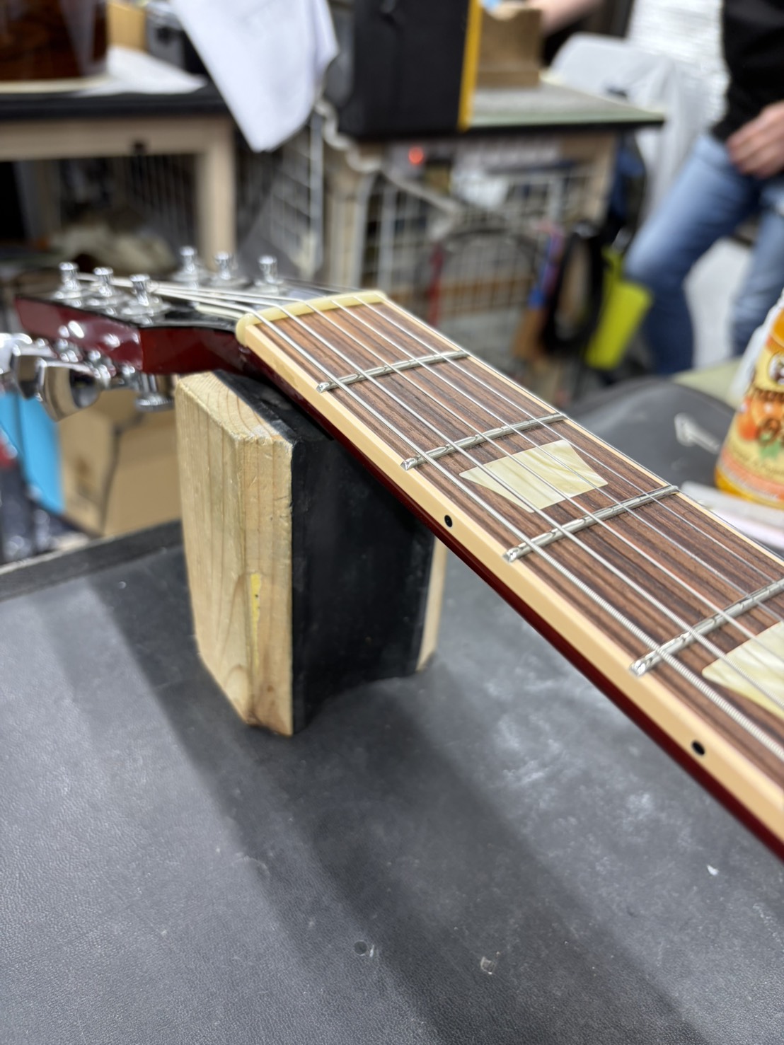 また、フレットの消耗が激しく、弦が通る箇所で、凸凹になっていたり、そもそもフレットがぺっちゃんこになってる時もあります。