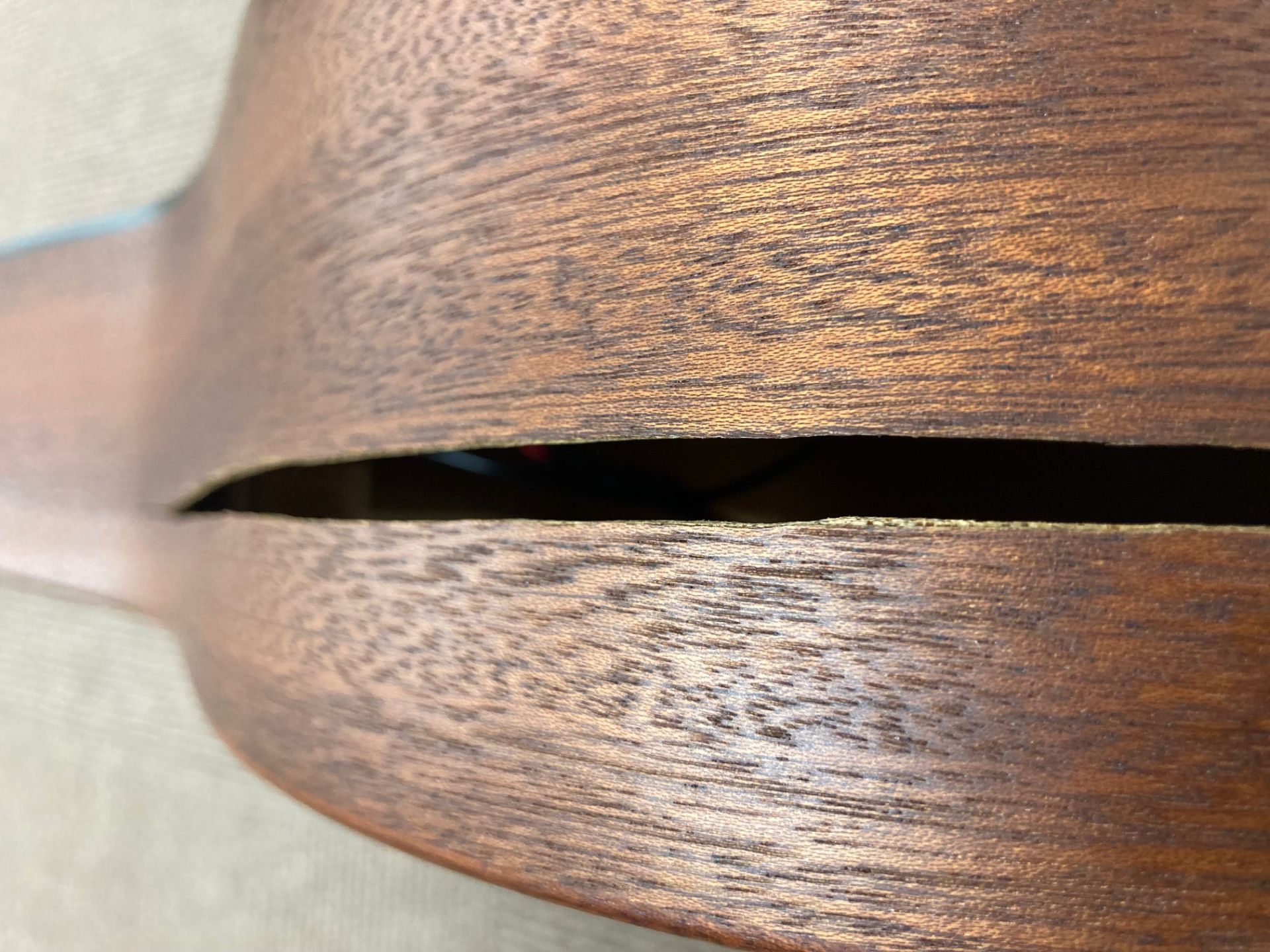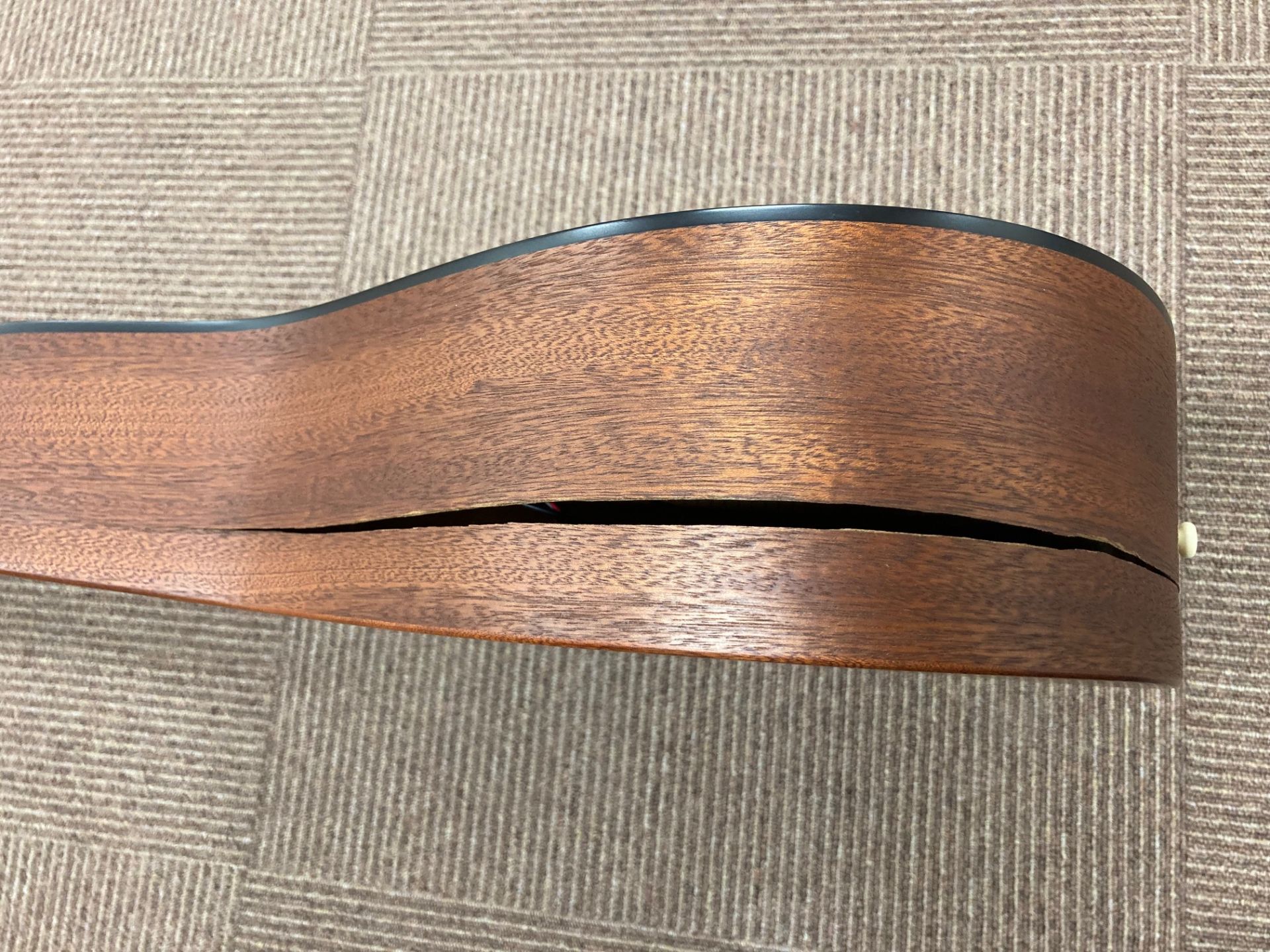 このギターは、割れている範囲が広く、割れてから時間もかなり経過しているとの事でした。