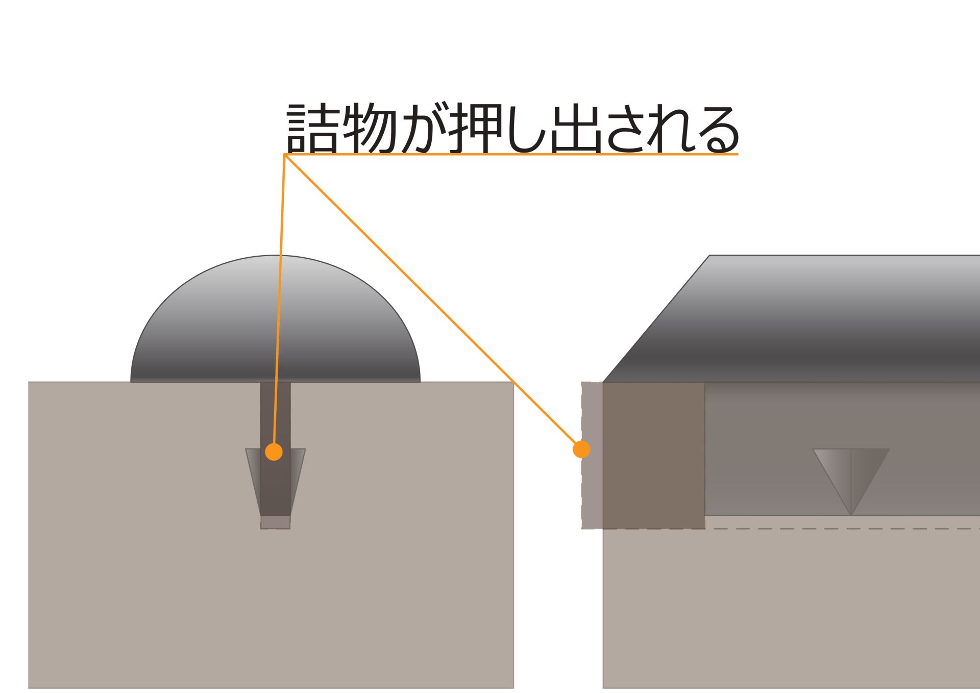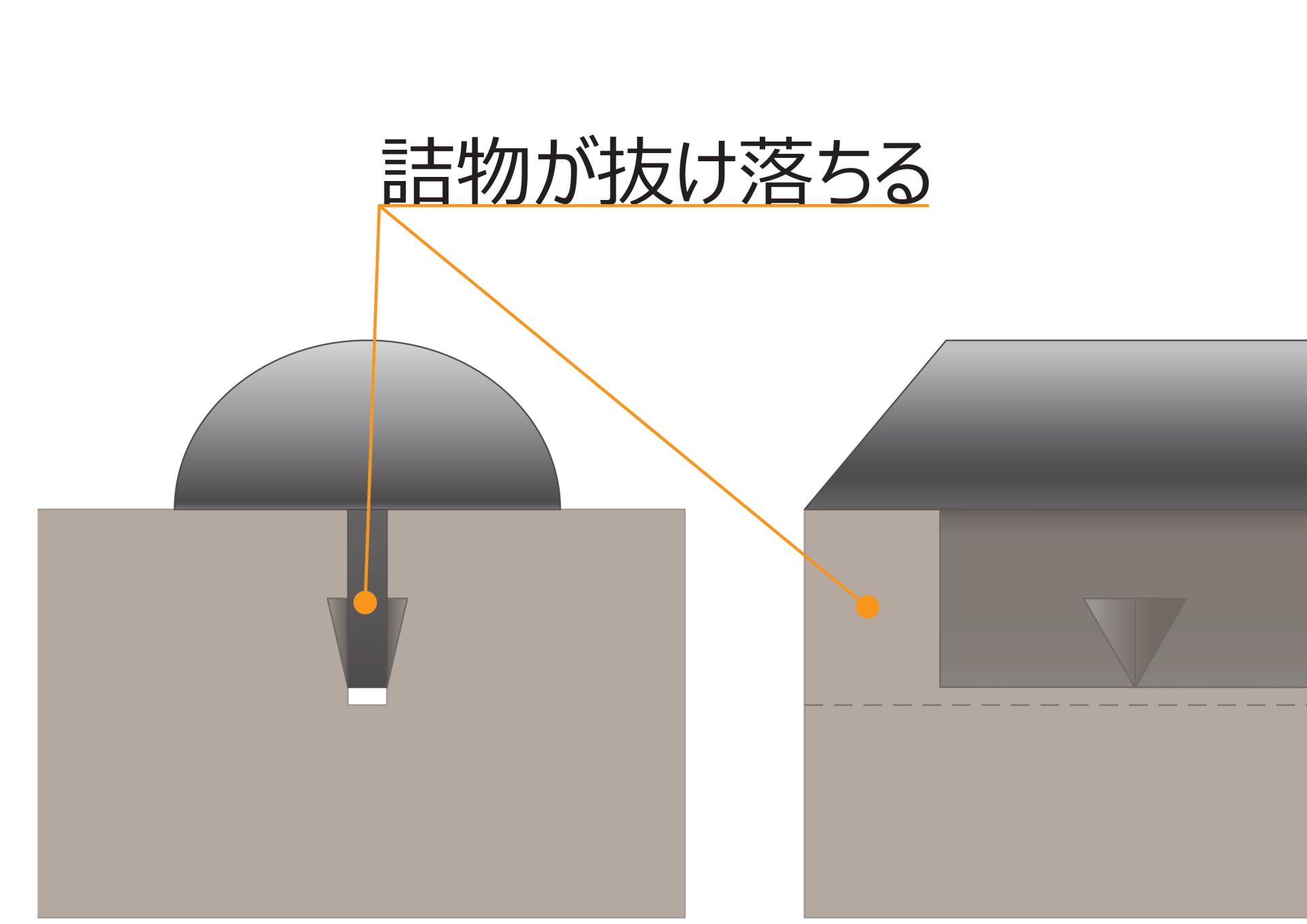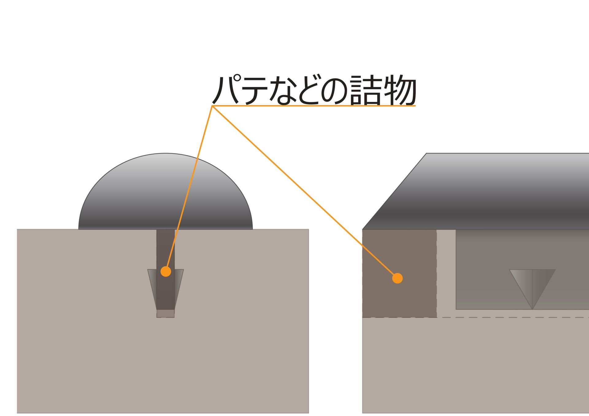 また、詰物の部分が木部の伸縮により押し出されて飛び出したり、抜け落ちて凹むことでバリのように感じられることも…