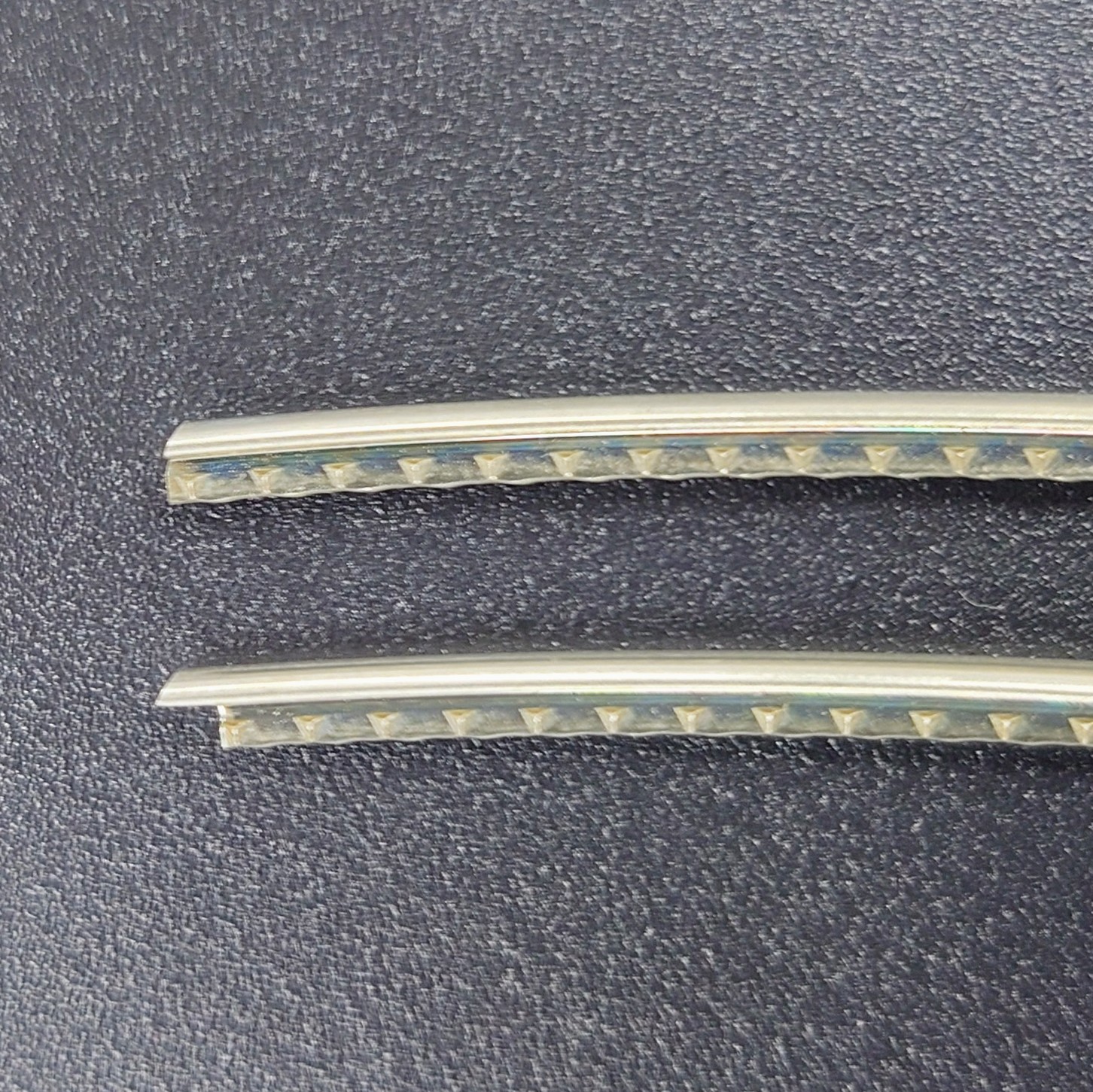 普段、目にするフレットは全貌の半分くらい。指板の中にはフレットを固定するための足が隠れています。