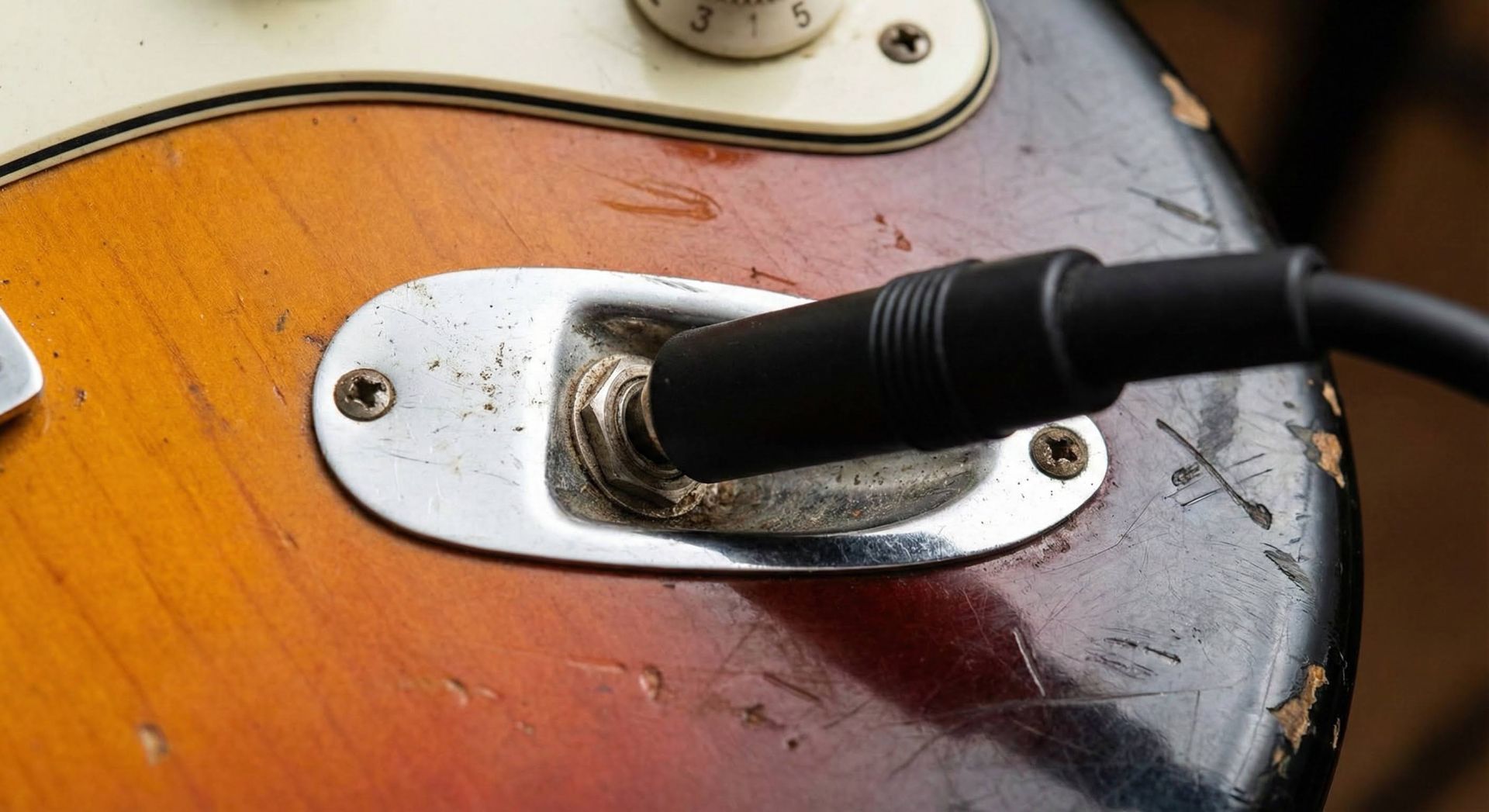 酷使されたギターのジャック部分。ここが接触不良を起こすと音が止まります。