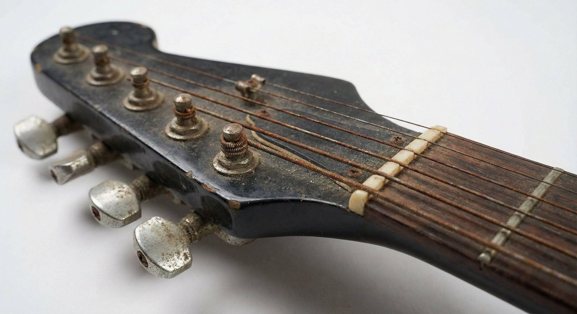 錆びて劣化したギターの弦。こんな状態では良い音は出ません!