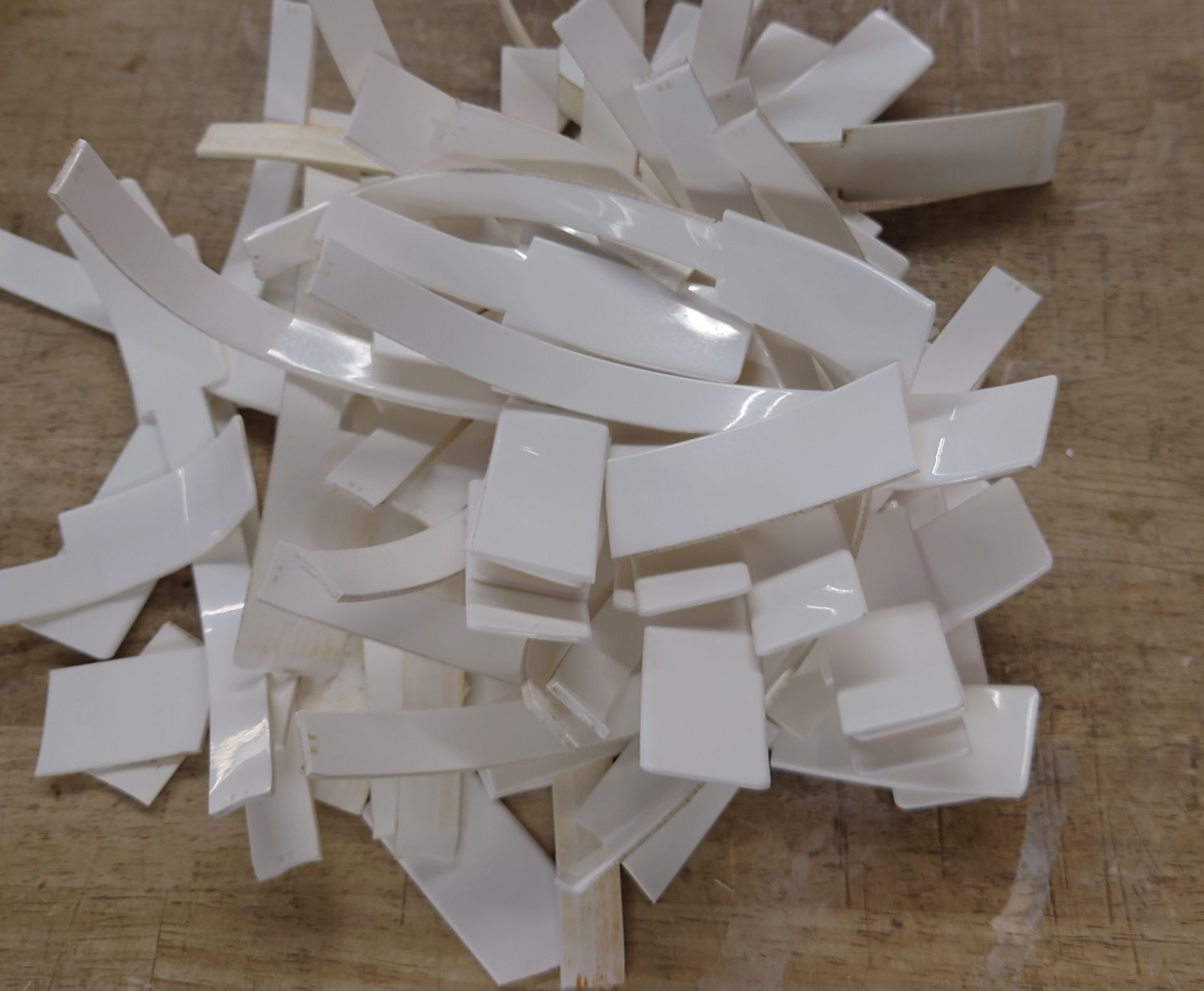 上面を剥がした白鍵に専用の接着剤を使って貼り替えをしていきます。ズレない様に固定をします。乾いたら鍵盤を固定して一回り大きく作られている白鍵パーツを鍵盤に合わせて削っていきます。