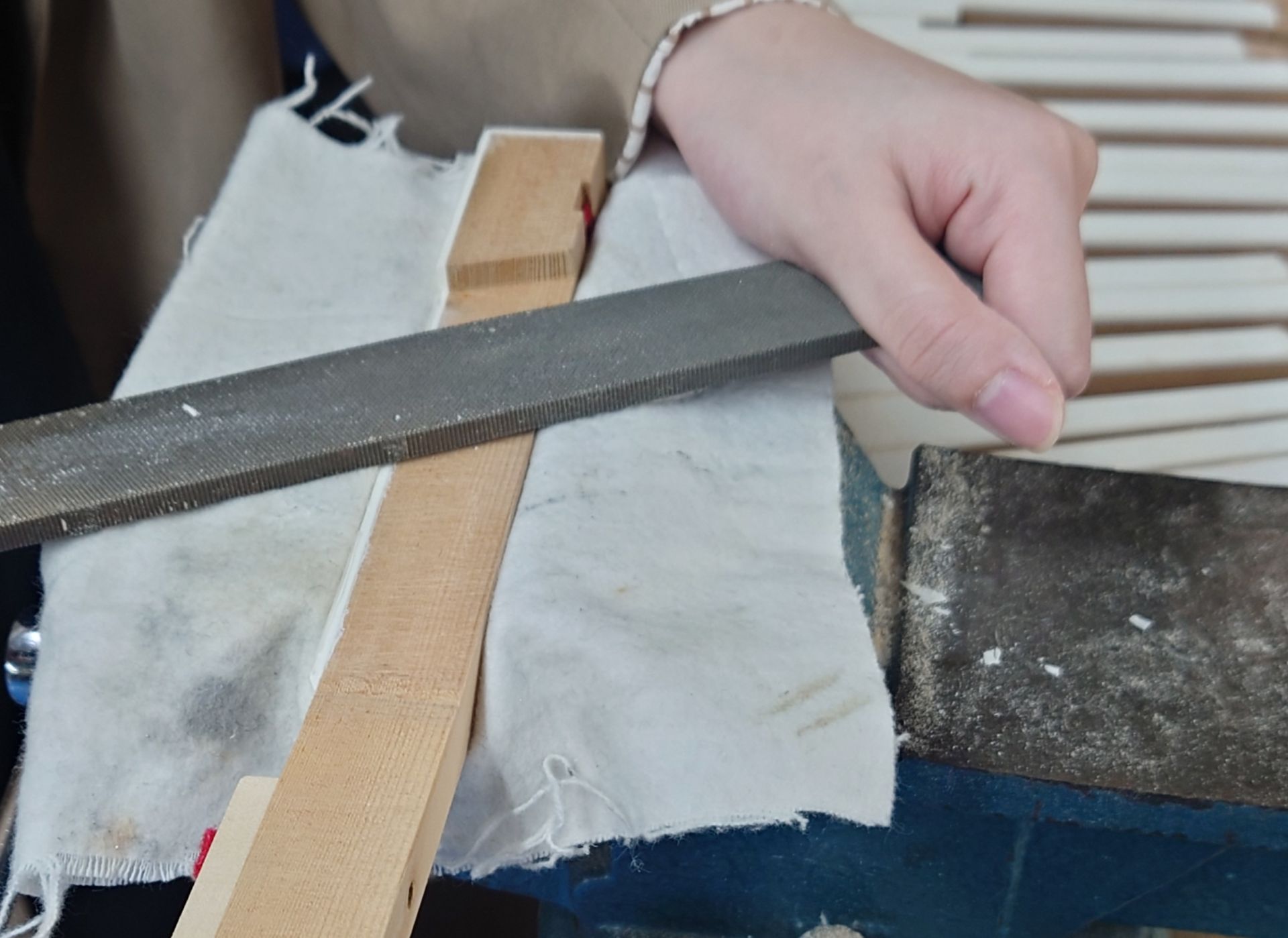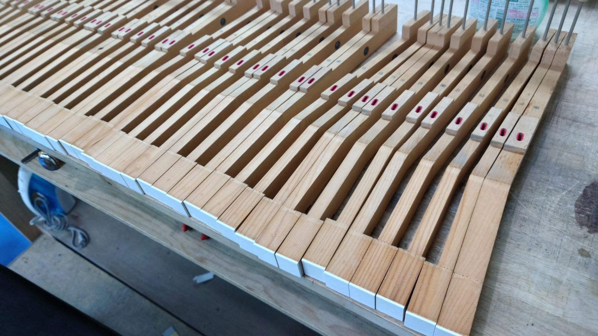 最後に鍵盤を戻して、指が引っかからない様に細かい所を削って調整していきます。