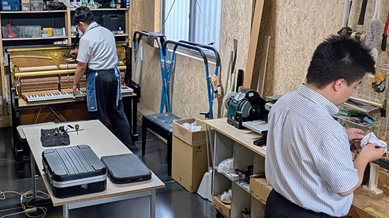 九州地域のピアノ調律の他、調整、修理の技術拠点として開設。工房ではピアノのクリーニングからオーバーホール(弦、ハンマーの交換)まで、ピアノのメンテナンス・修理のご依頼に幅広く対応しております。