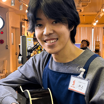 関西人感が凄いと言われる井上です! 大阪の老舗ギター工房からやって参りました。 弾きにくさで挫折してしまう方をなんとか調整で救いたい。