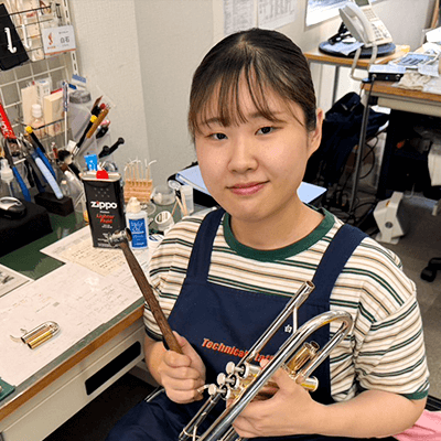 福岡県出身の西村です!ヤマハのSAXを愛用しています。楽器修理を通じて、今よりもっと音を楽しんで頂けるように最善を尽くします。