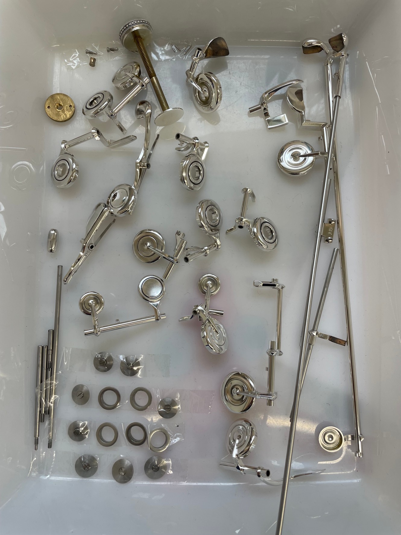 キィを全て分解し、一つ一つを丁寧に作業していきます。