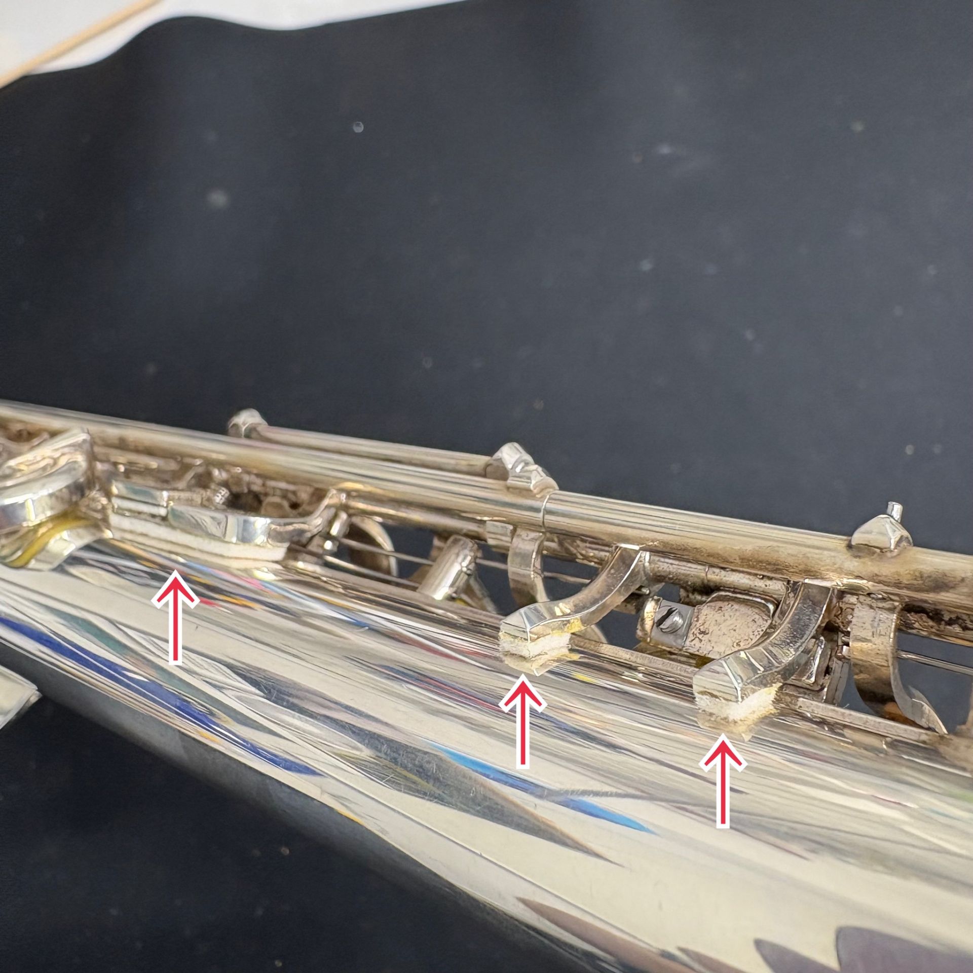ということはキィを動かすとキィ(金属)と管体(金属)がカチカチと当たってしまうんです。
