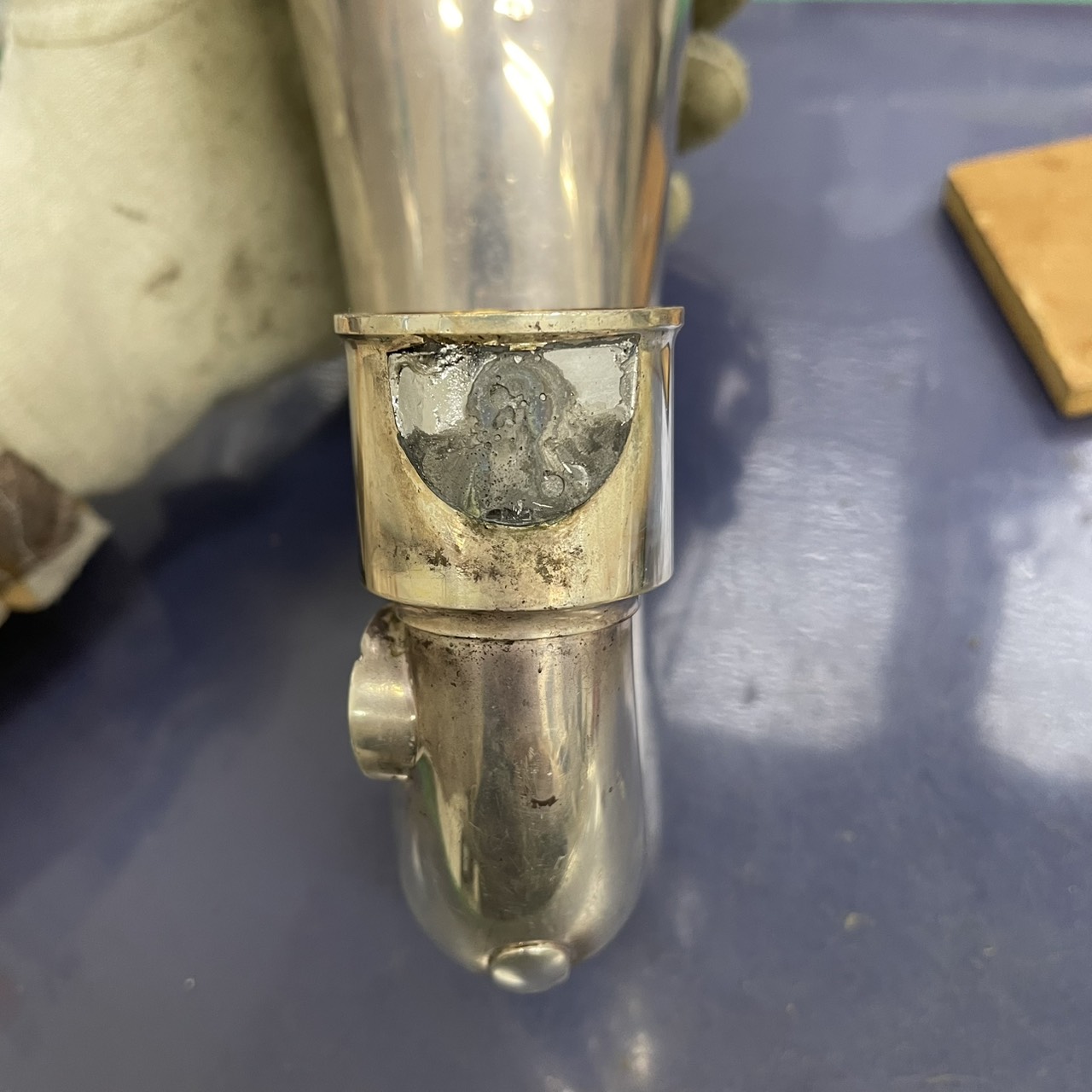 新品パーツも熱を浴びると多少の変色が発生します。銀磨きをして完成!!!