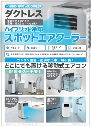【商品名】 :ダクトレス ハイブリッド冷却 スポットエアクーラー 1.7kw