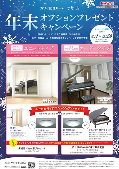 カワイ防音室「年末オプションプレゼントキャンペーン」実施中