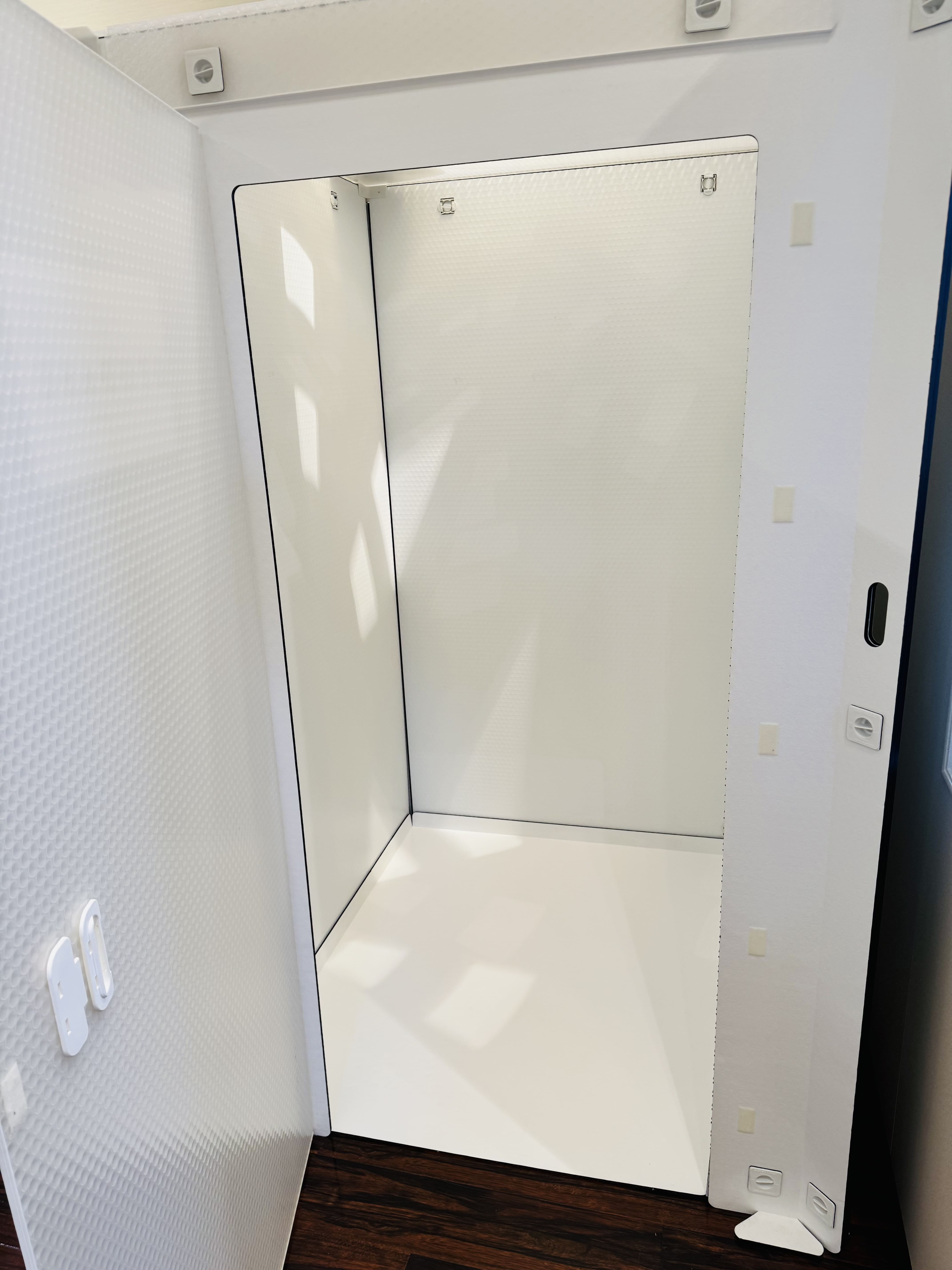 壁や天井のパーツを組み合わせる要領で簡単に組み立てられるように設計されています。パーツを順番につなぎ合わせるだけで防音ルームが出来上がります。組み立て後もお客様自身の用途に合わせて吸音材などを用いて、部屋内の音場(響き方)をカスタマイズ出来ます。吸音材のご提案も可能です。