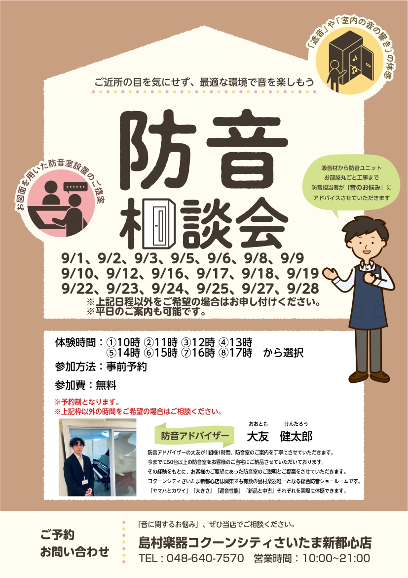 詳しくは防音ショールーム埼玉inコクーンシティ店個別防音相談会をご覧下さい。
