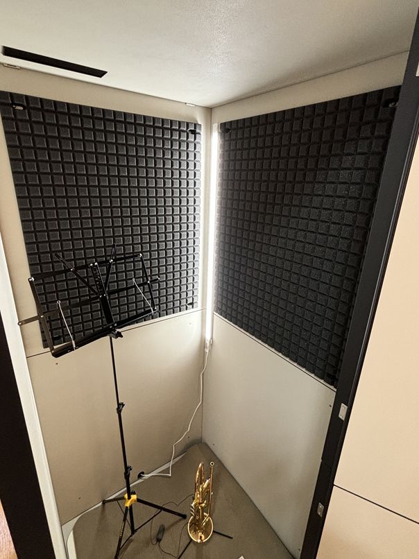 フルートやクラリネットなど、音量とサイズの小さい楽器に適した1人用の簡易防音室で、約0.5畳のコンパクトサイズ。