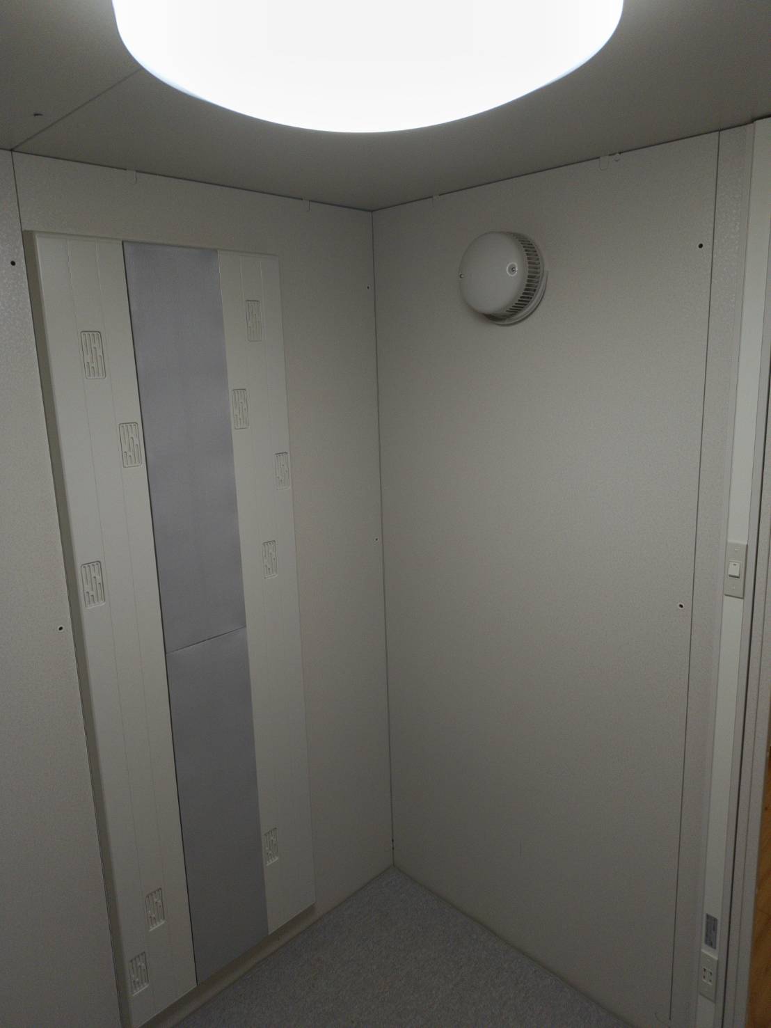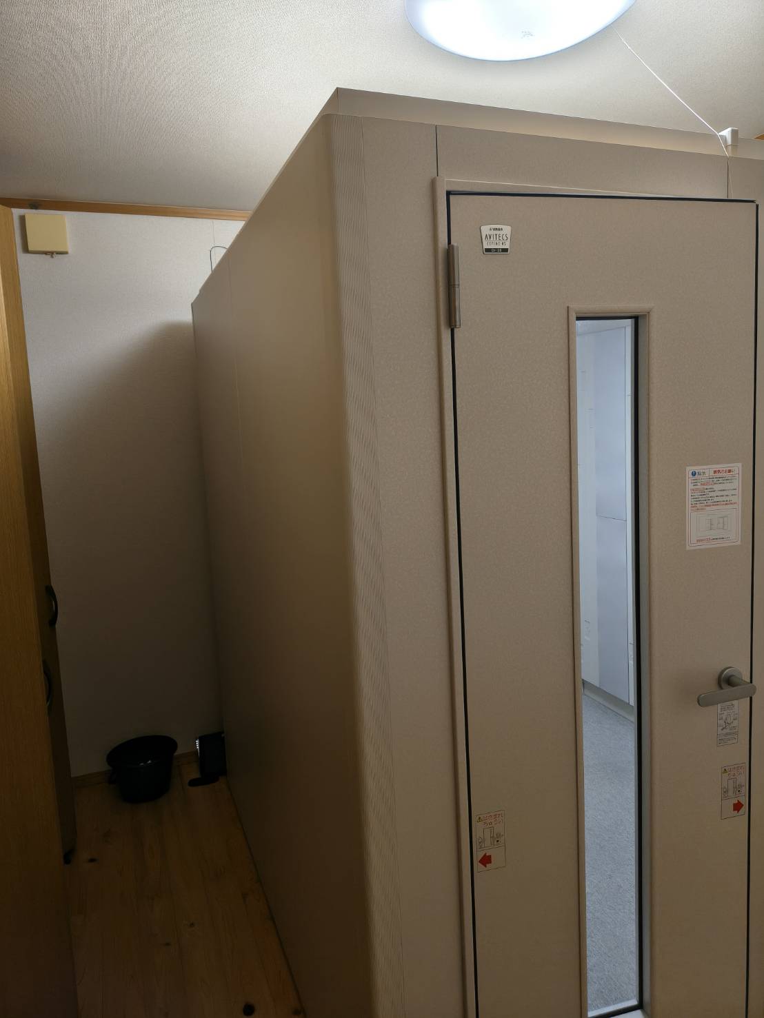 なお、こちらの中古防音室は倉庫保管のため体験いただくことができませんが、店頭展示の新品防音室で遮音性能や広さの体験が可能です。